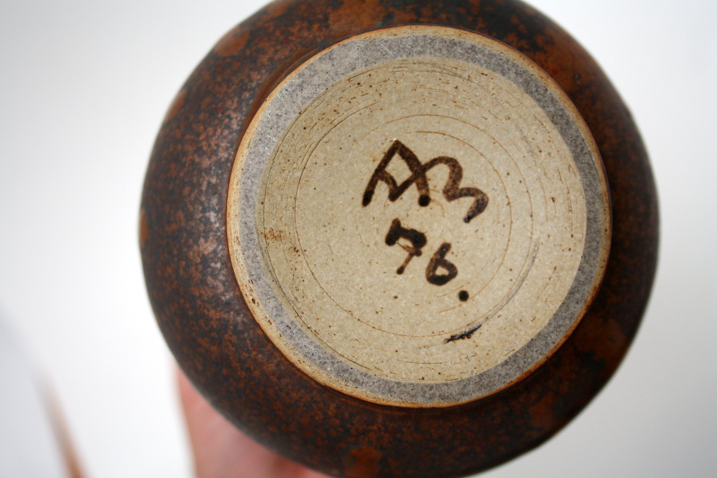 Arne Bang, Vase i mat løbeglasur i jordfarver. Signeret AB 76. Højde 19 cm. Øverste diameter 12,5 cm. Perfekt stand. Pris: SOLGT