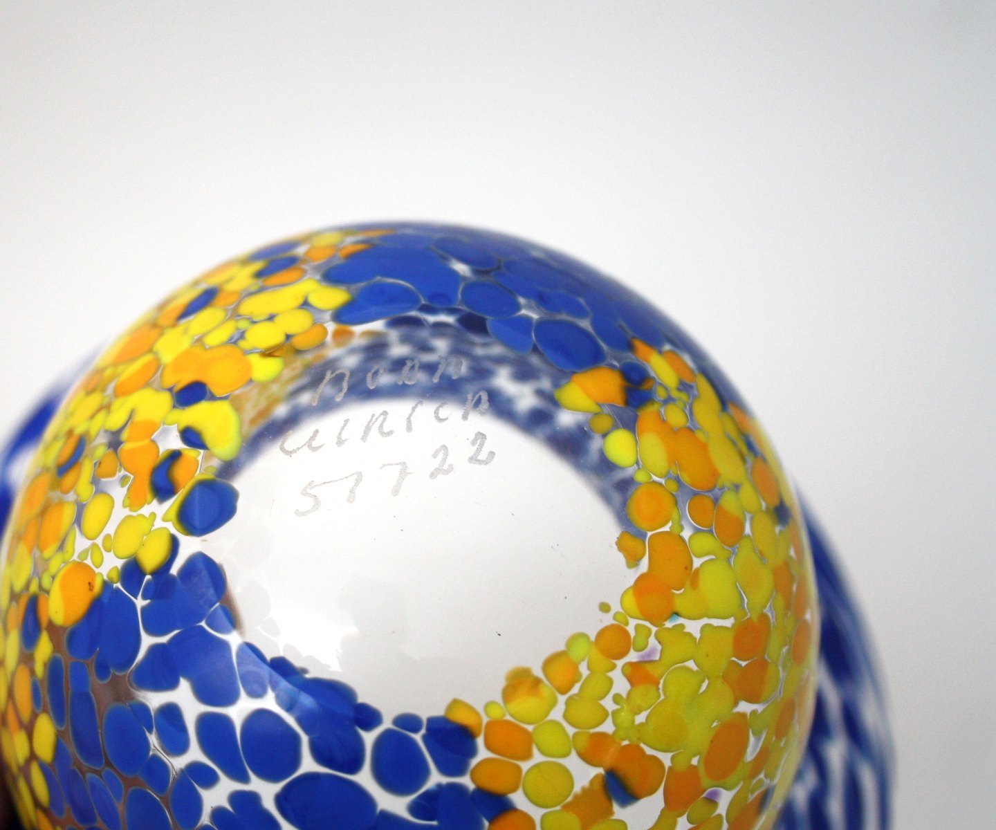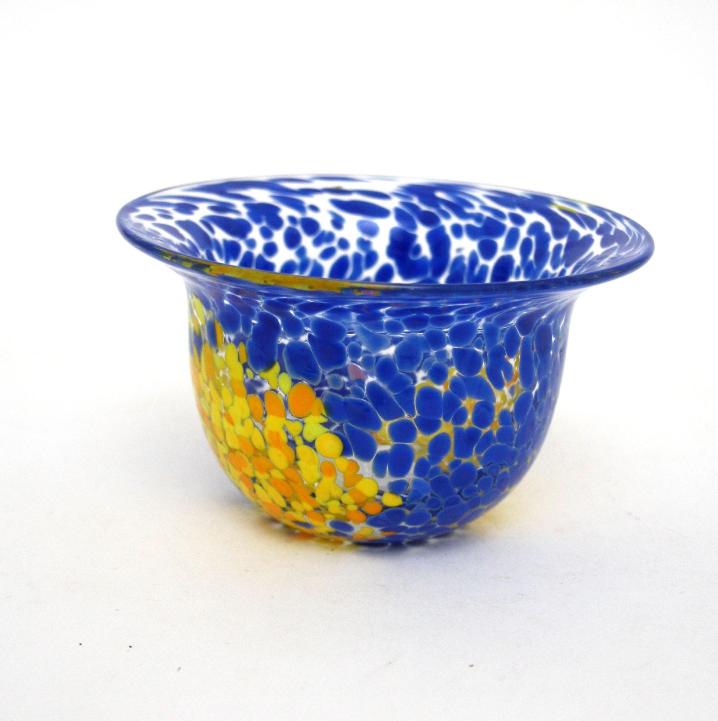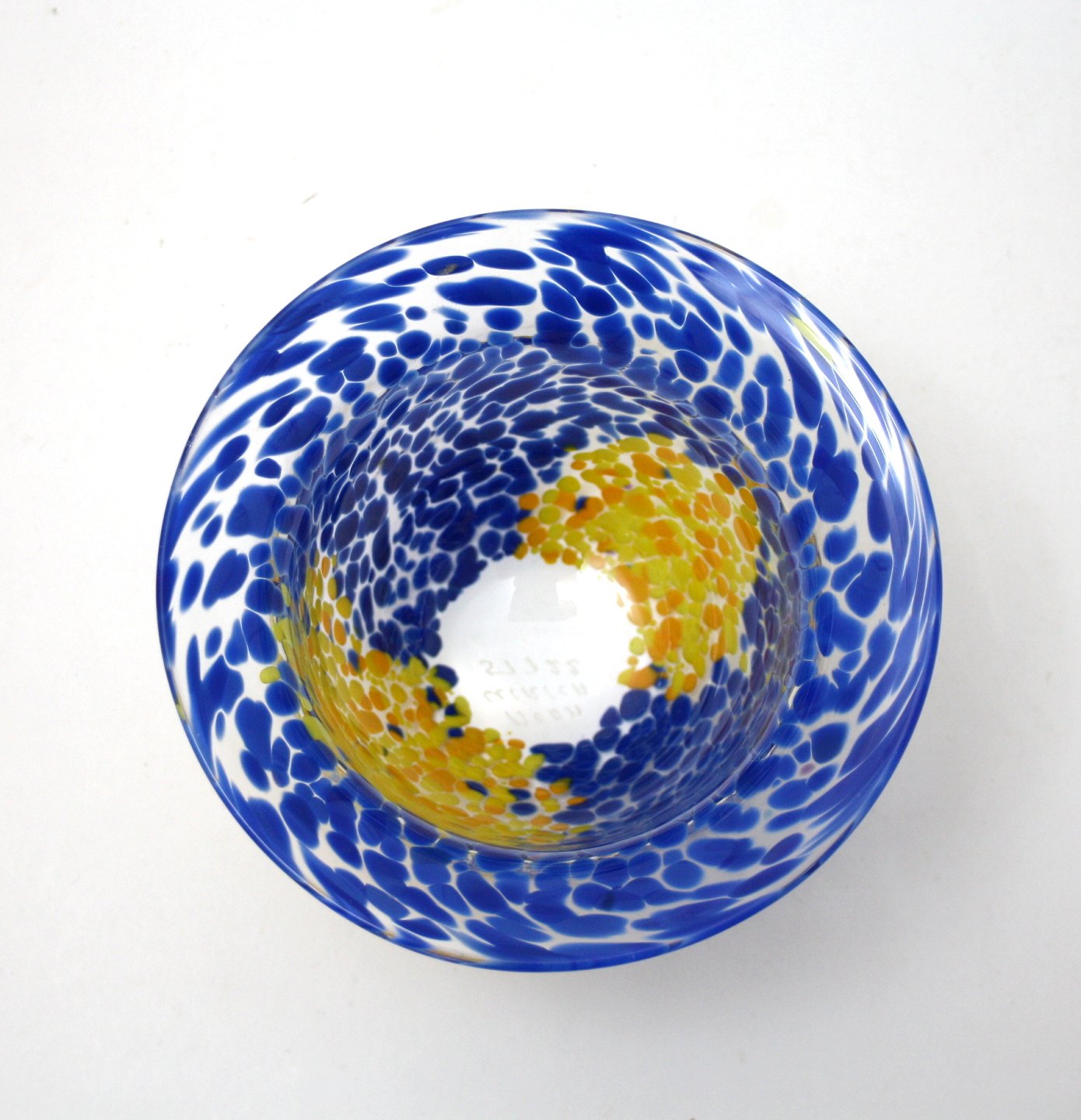 Kosta Boda, Tintomara skål med indlagt glas i blå og gule farver. Designet af Ulrica Hydman Vallien. Signeret Boda Ulrica 57722. Højde 7,5 cm. Øverste diameter 13 cm. Flot stand. Pris: SOLGT