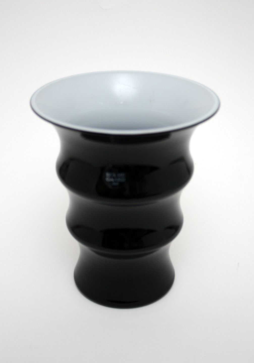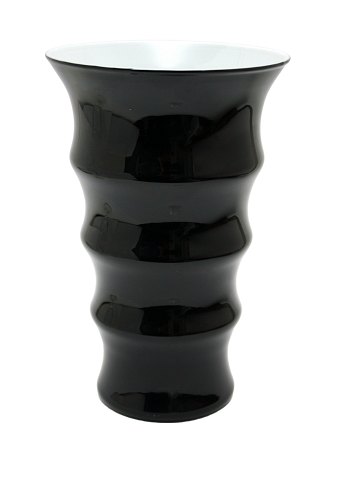 Holmegaard, Karen Blixen sort vase, opalhvid indvendig. Designet af Anja Kjær fra 2000. Højde 17 cm. Diameter 14,5 cm. Med Holmegaard label. Signeret i bund. Fin stand. ARKIV foto. Pris: 375 kr. stk. Lager: 1