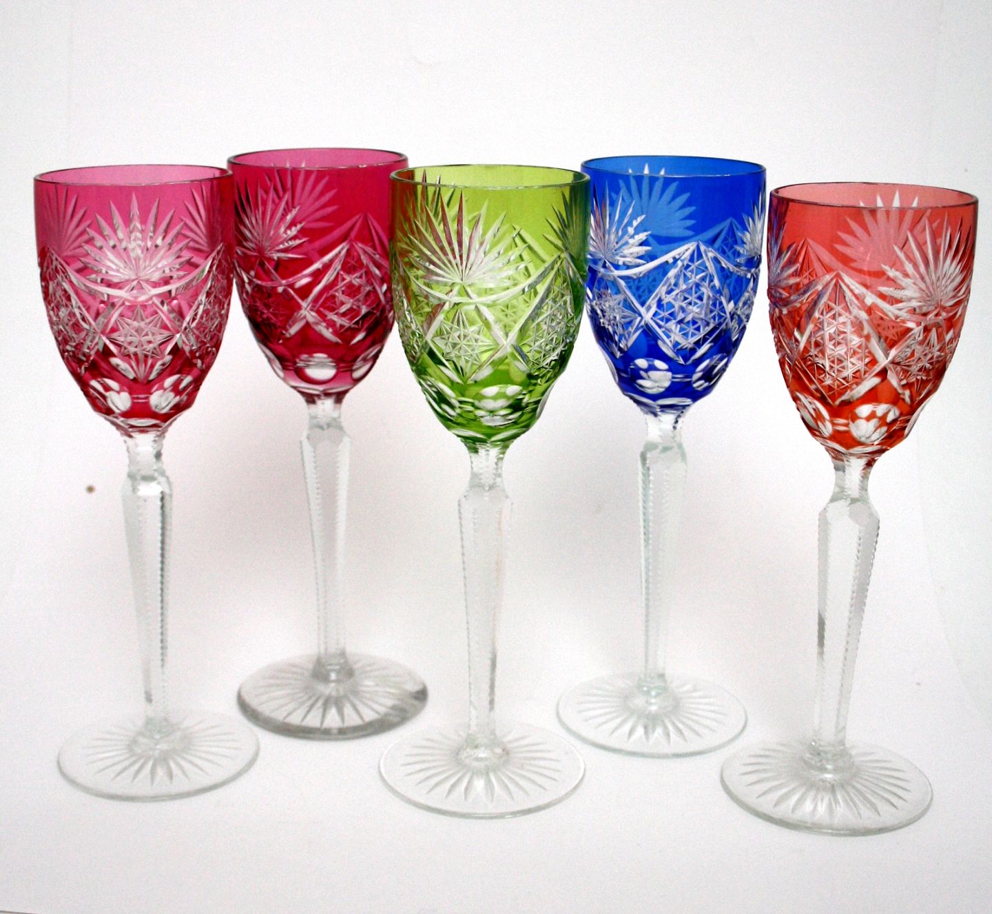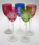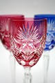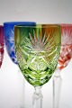 Bøhmisk krystal, slanke vinglas, slebet kumme og stilk. Højde 22 cm. Øverste diameter ca. 6,5 cm. Pris: 275 kr. stk. Lys rosa. Lager: SOLGT Rosa. Lager: SOLGT Grøn. Lager: SOLGT Blå. Lager: SOLGT Laksefarvet. Lager: SOLGT
