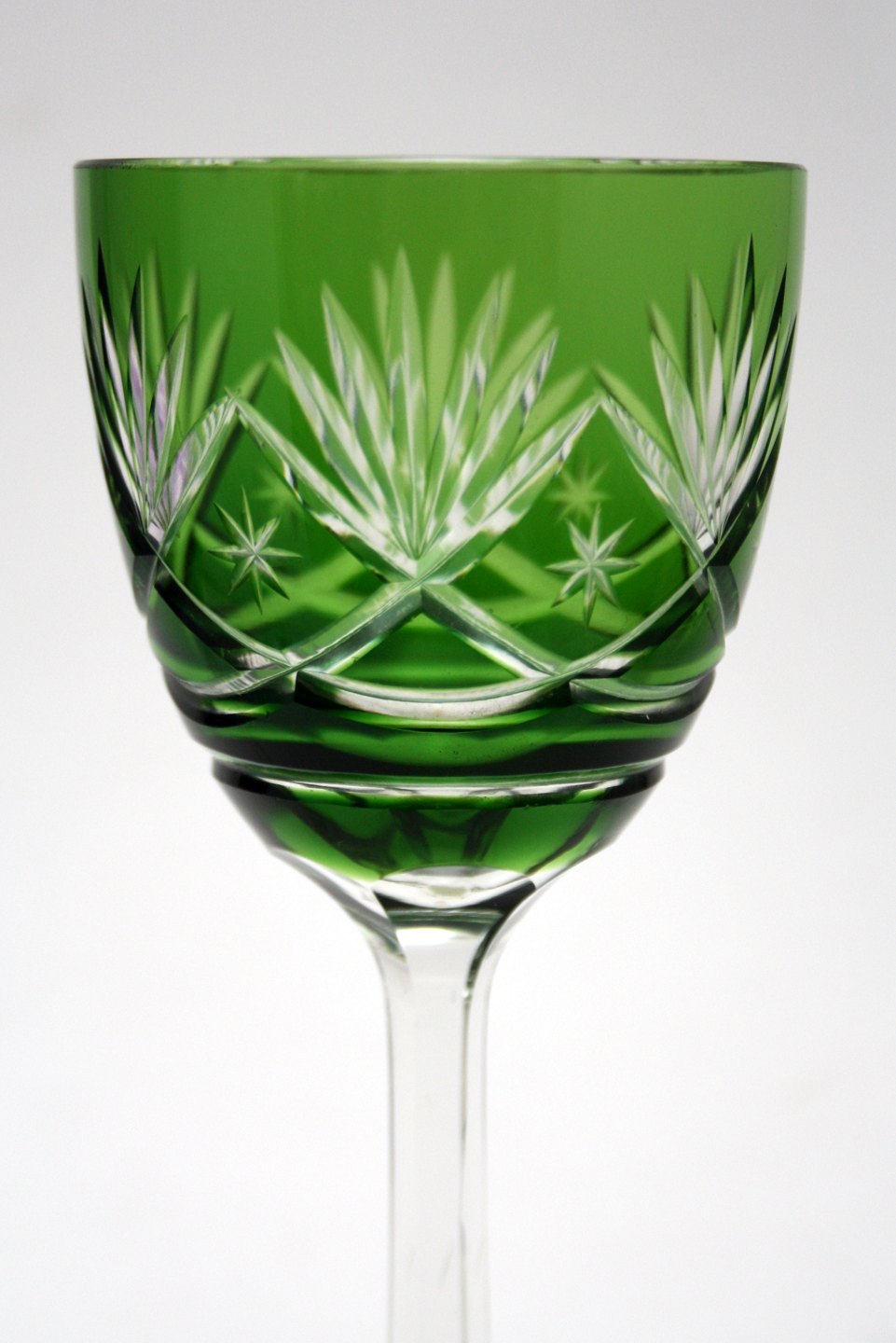 Bøhmisk krystal, Vinglas. Slebet kumme og stilk. Højde 20,5 cm. Pris: 225 kr. stk. Grøn. Lager: SOLGT Violet. Lager: SOLGT I2