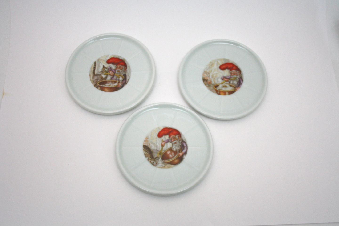 Bing & Grøndahl, Harald Wiberg flaskebakker med gamle nisser. Diameter 11,5 cm. I. sortering. Pris: