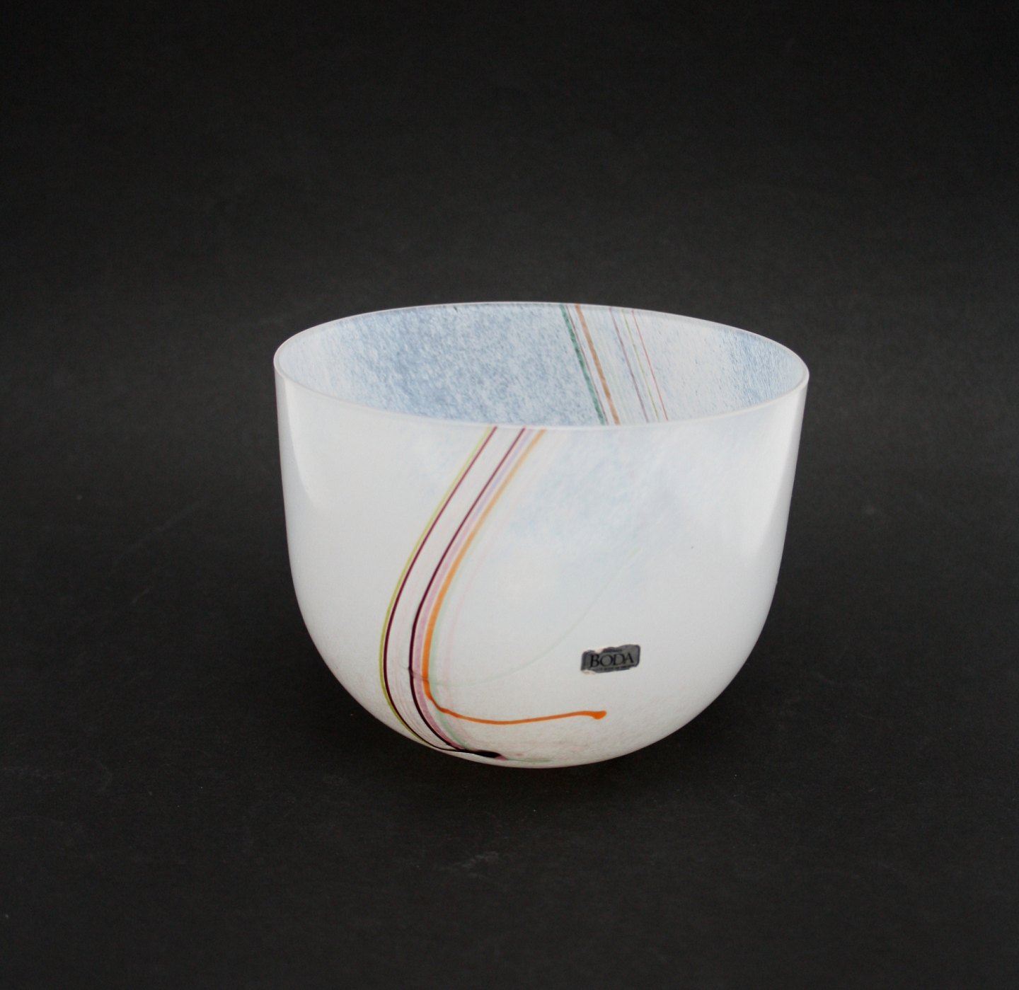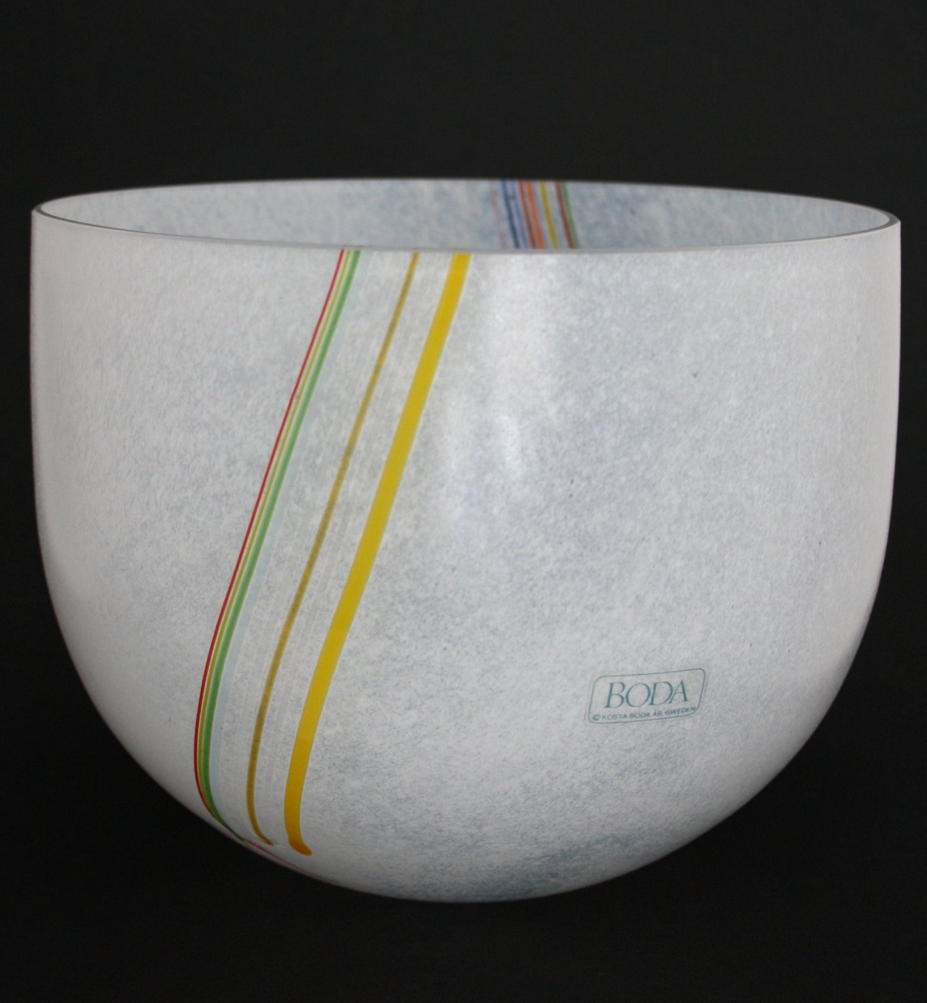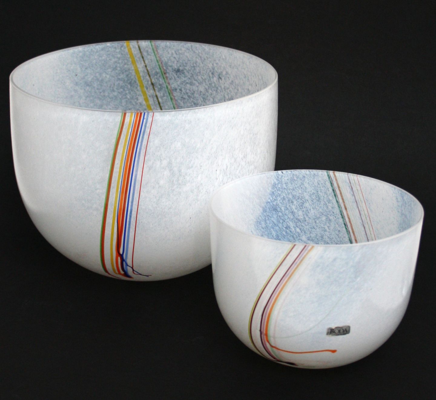 Kosta Boda, Rainbow kunstglas vase af Bertil Vallien. Signeret Stor skål, højde 16,5 cm. diameter 20,5 cm. Pris: SOLGT Lille skål, højde 10,7 cm. diameter 10,7 cm. Pris: SOLGT