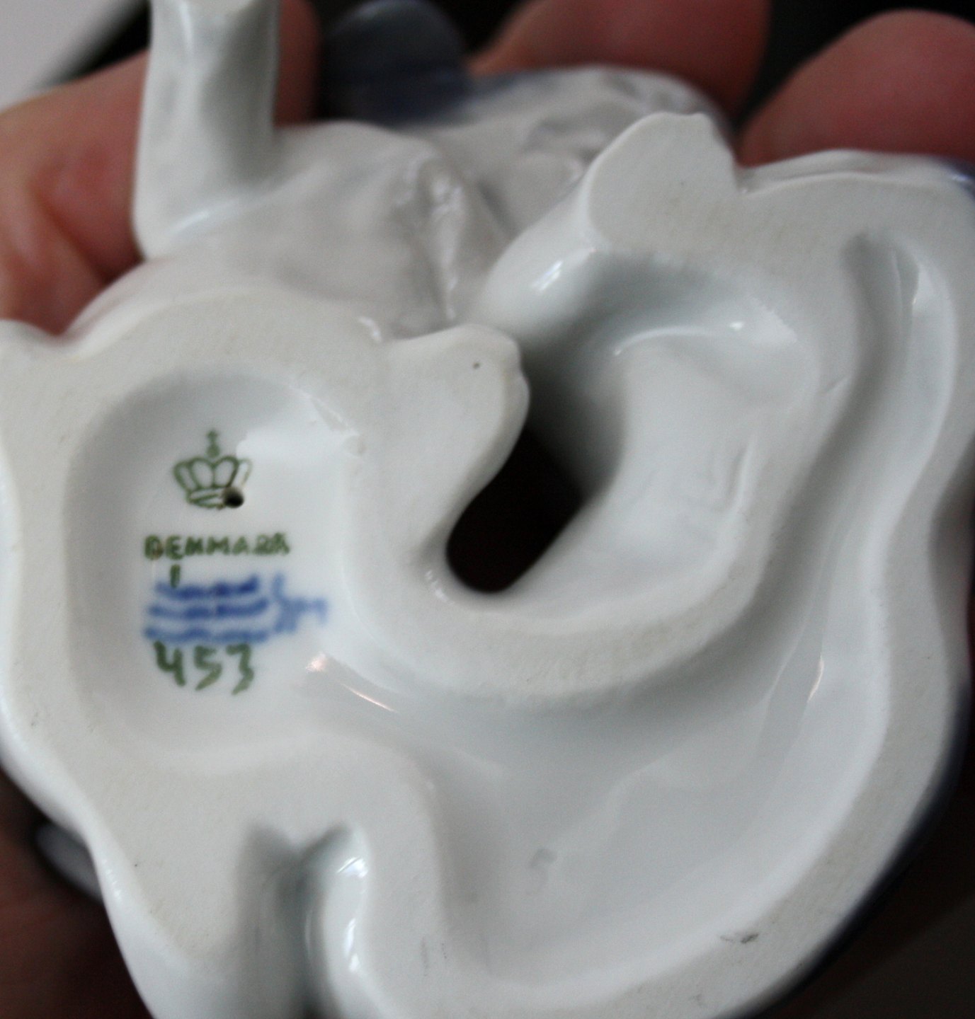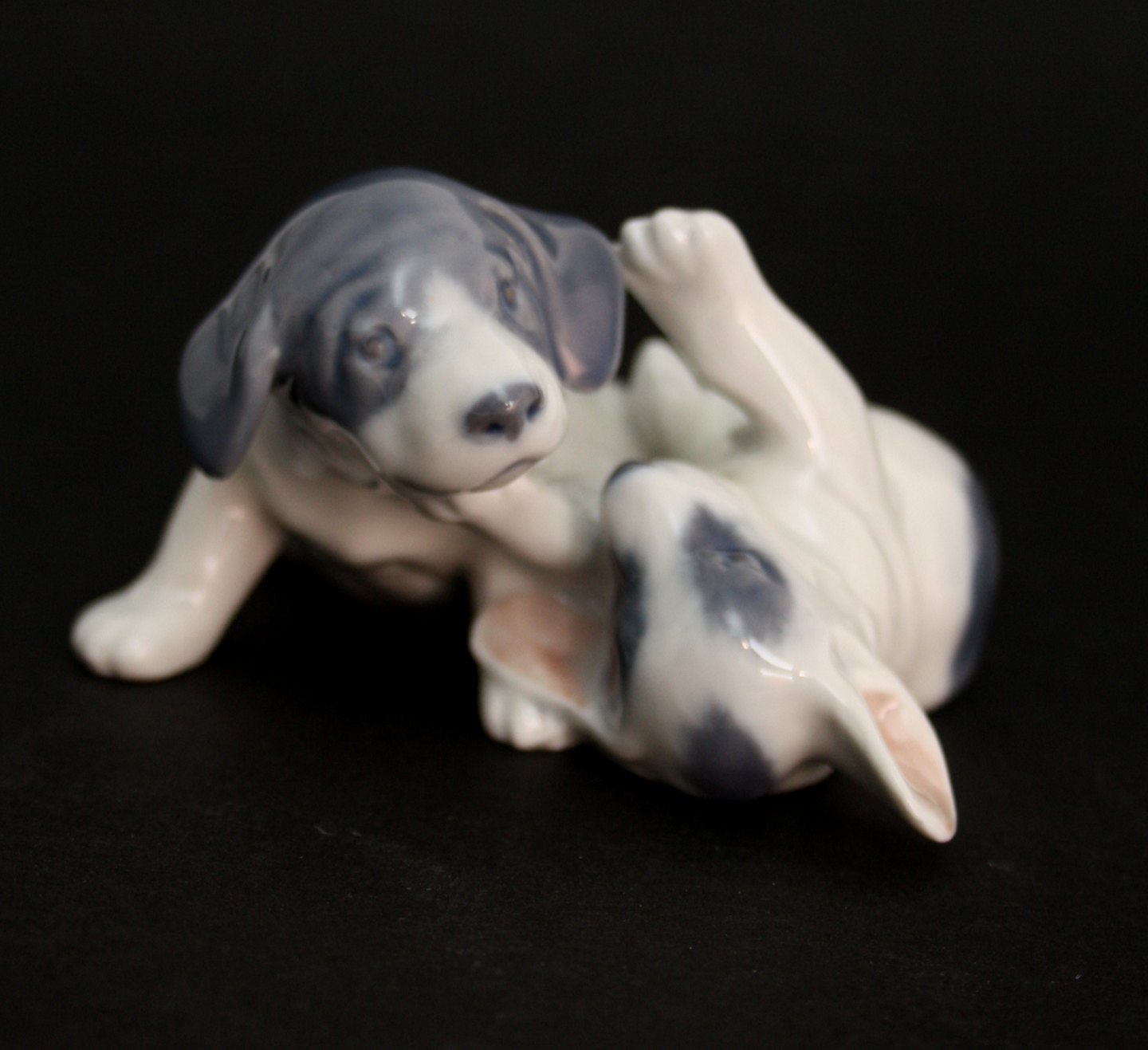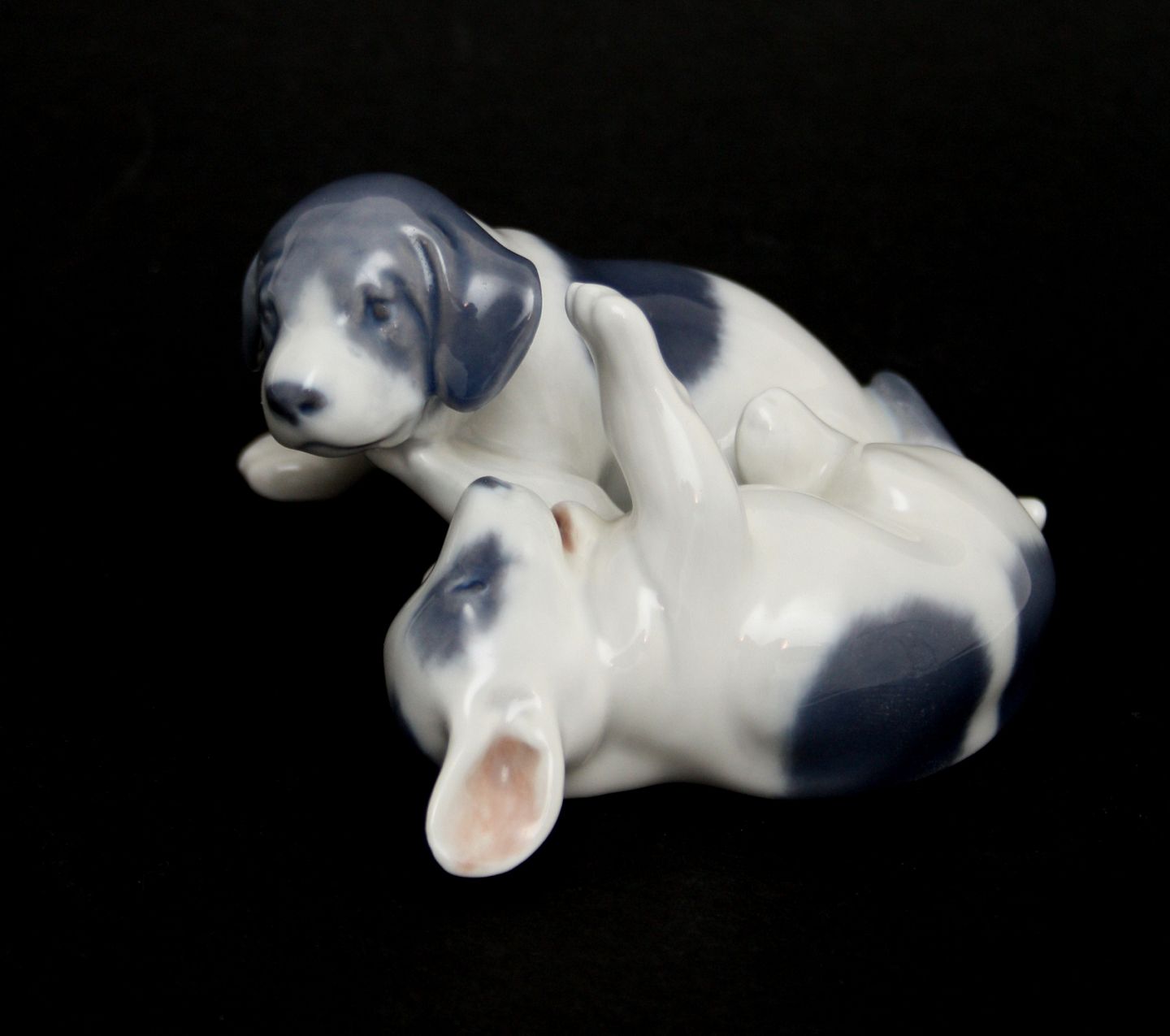 Royal Copenhagen, Pointerhvalpe der leger. Formnr. 453. Højde 5 cm. Længde 10 cm. II. sortering. Pris: SOLGT