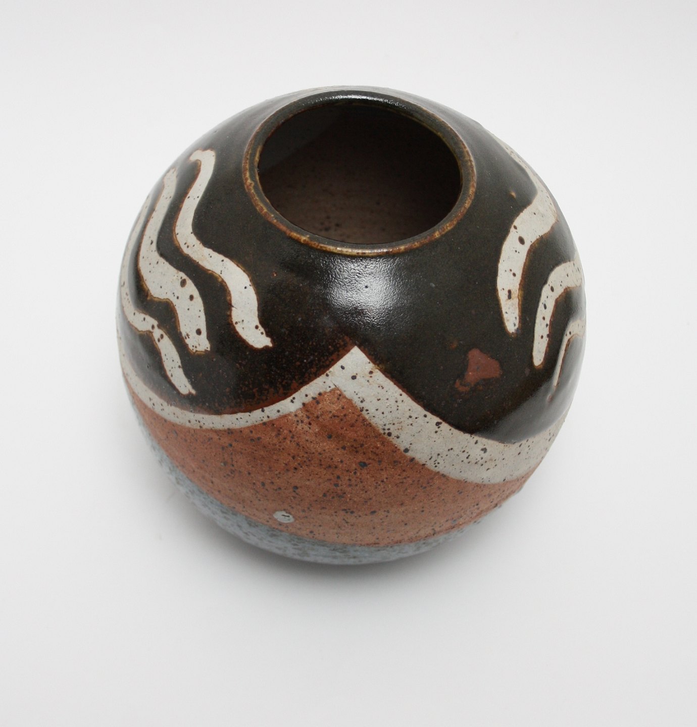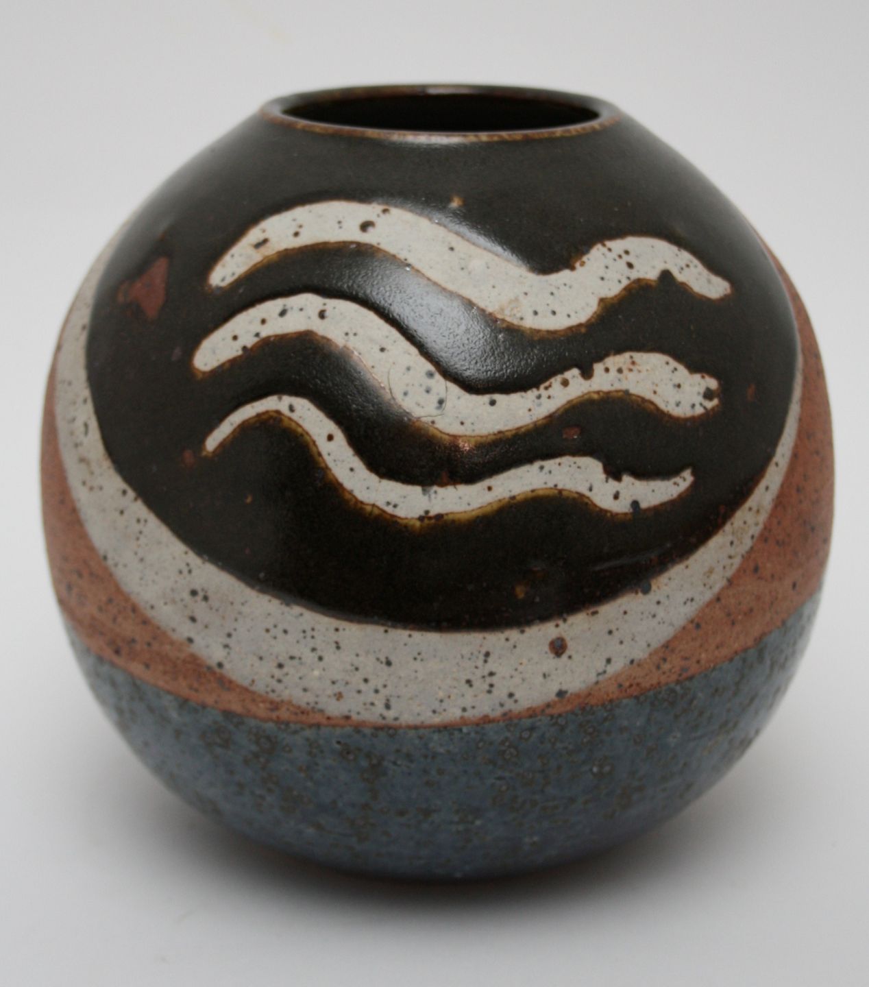 Rund vase, højde 18 cm. diameter 18 cm. signeret, hel og fin stand. Pris: SOLGT