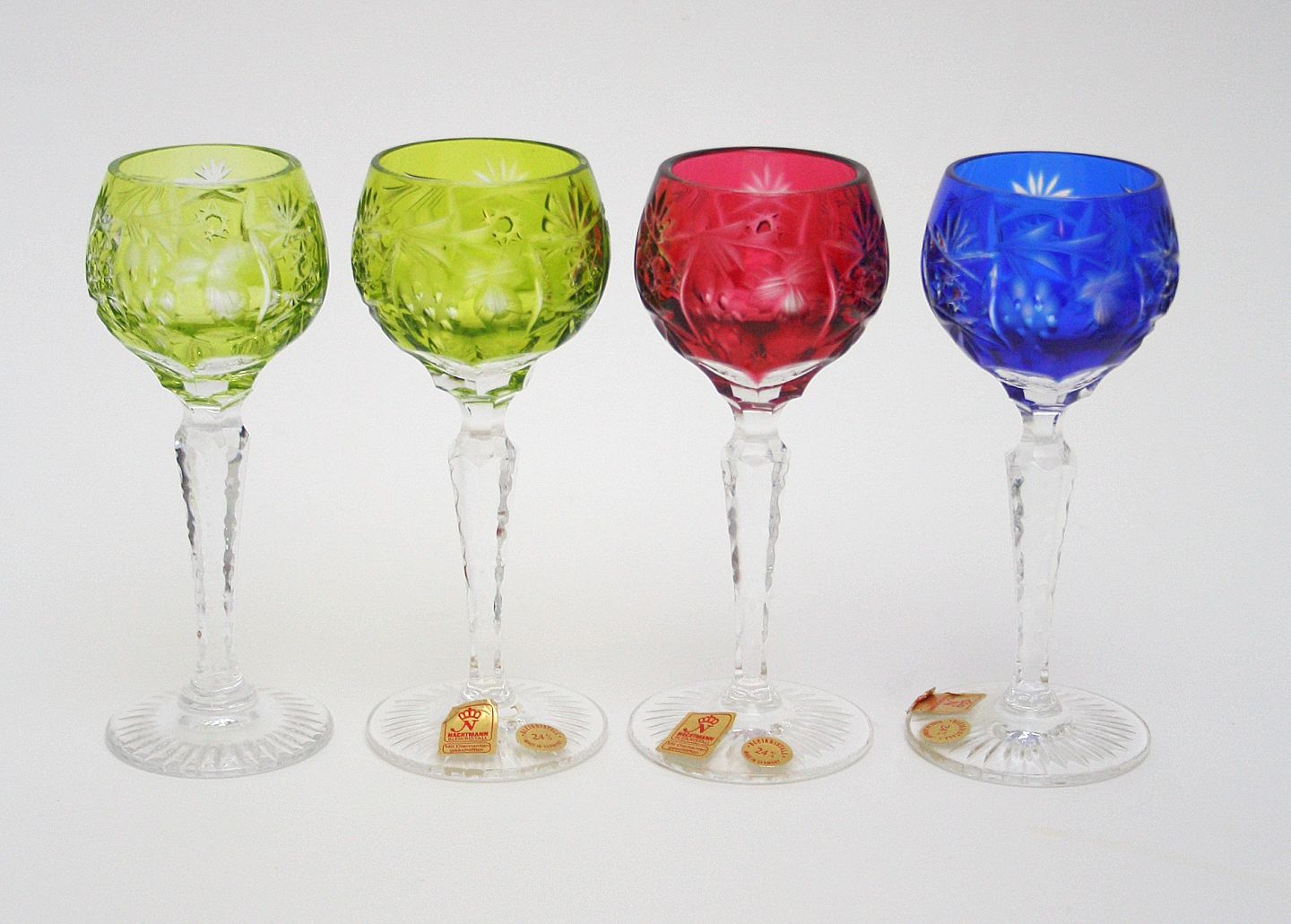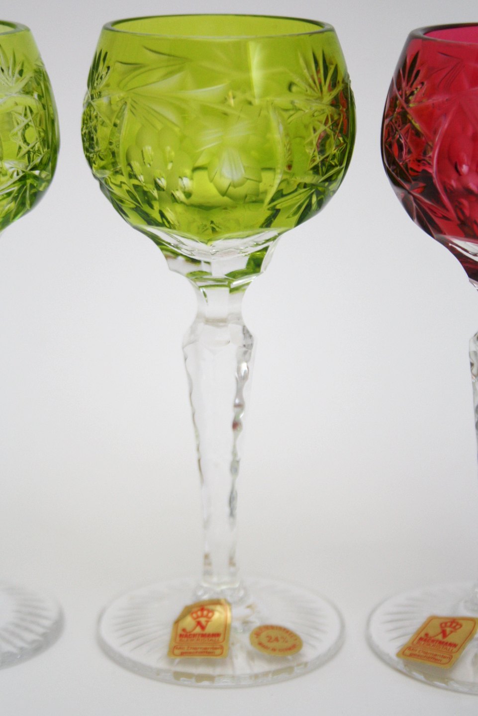 Bøhmisk krystal, Nachtmann portvin 24% blykrystal, Slebet på stilk og kumme. Højde 12 cm. Pris: SOLGT Lys grøn. Lager: Rød. Lager: Blå. Lager:
