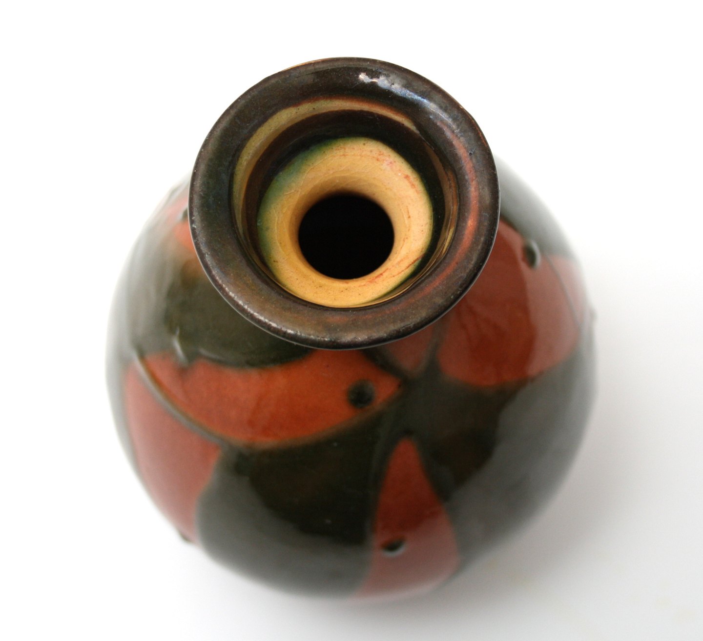 Kähler, smuk vase glaseret i rødlige og brunlige nuancer. Signeret HAK Denmark. Højde 17 cm. Flot stand. Pris: SOLGT