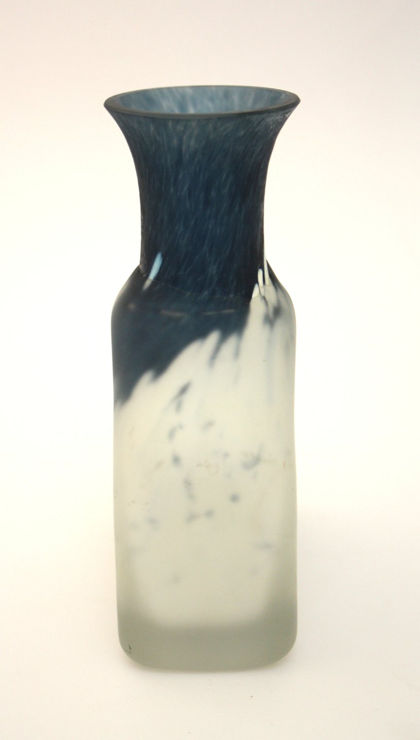 Kosta Boda, Vase i syrematteret glas designet af Monica Backström. Højde 16,5 cm. Længde 12 cm. Pris: SOLGT