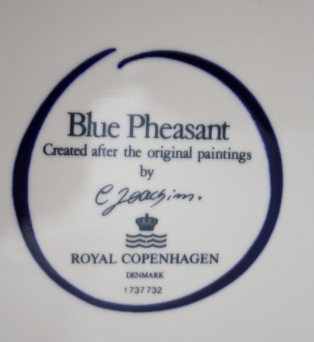 Royal Copenhagen, Blå Fasan (Blue Pheasant) designet af Chr. Joachim. Ovalt stegefad. Længde 42 cm. Bredde 30,5 cm. II. sortering. Nr. 1737 732. Fin stand. Pris: SOLGT