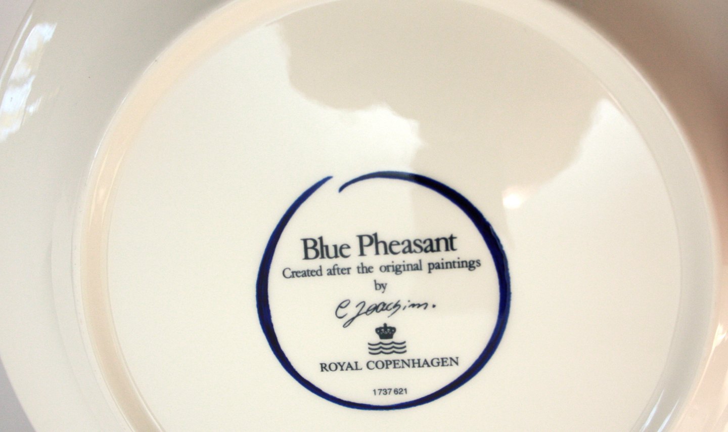 Royal Copenhagen, Blå Fasan (Blue Pheasant) designet af Chr. Joachim. Frokosttallerken. Nr. 1737 621. Diameter 21 cm. I. sortering. Pris: SOLGT