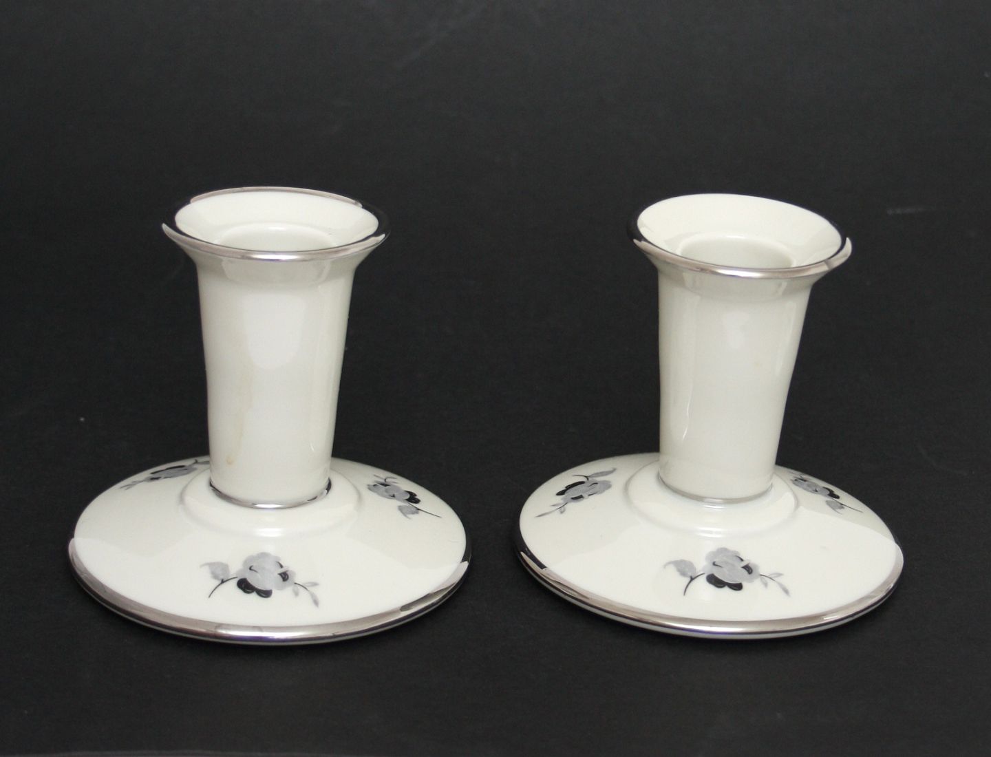 Kjøbenhavns Porcellains Maleri, Sort rose creme med platinkant. Lysestage med høj hals. Højde 8 cm. Perfekt stand. Pris: SOLGT