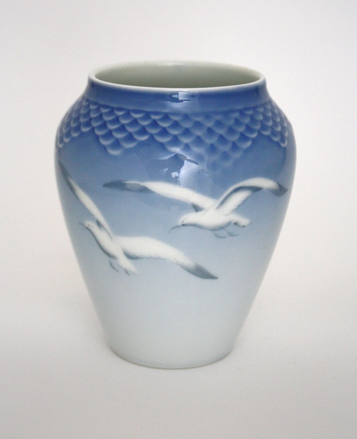 Bing & Grøndahl, Mågestel uden guldkant. Vase. Formnr. 681. Højde 12 cm. Største diameter 10 cm. II. sortering. Fin stand. Pris: SOLGT