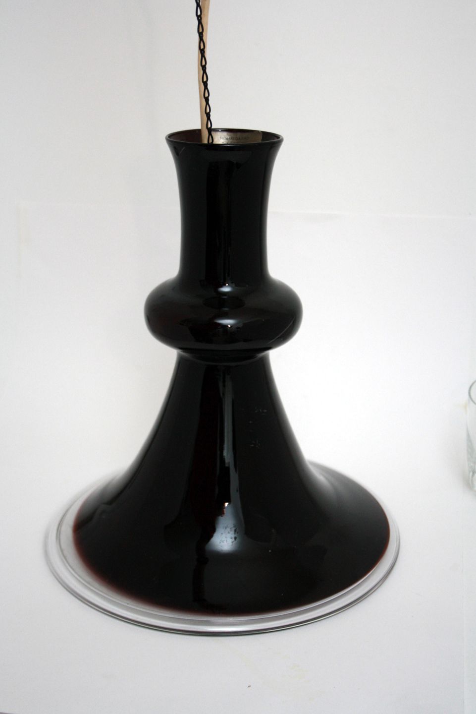 Holmegaard, Etude lampe i auberginefarvet glas. Designet af Michael Bang i 1978. Højde 30,5 cm. Diameter 26 cm. Enkelte småridser. Pris: SOLGT