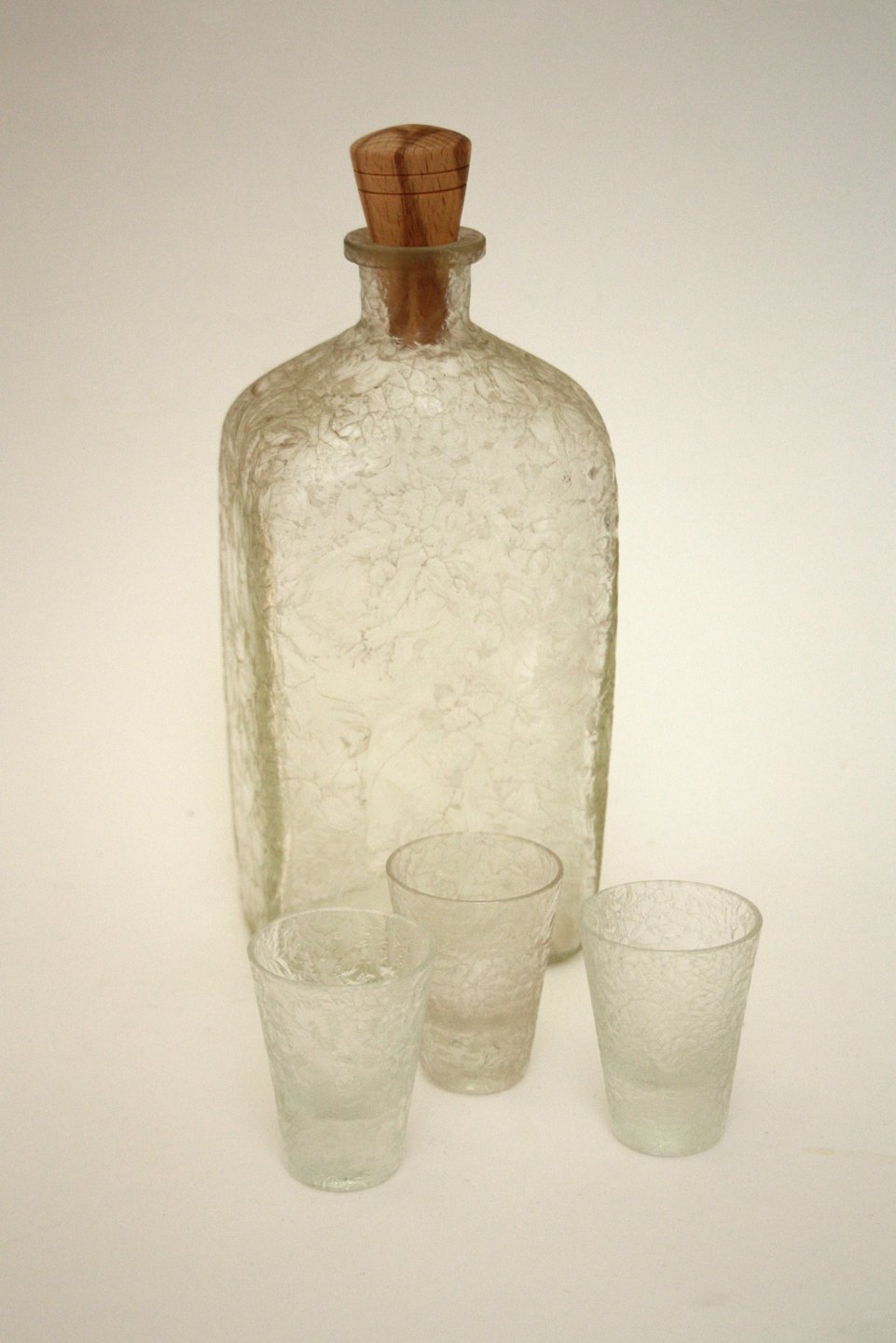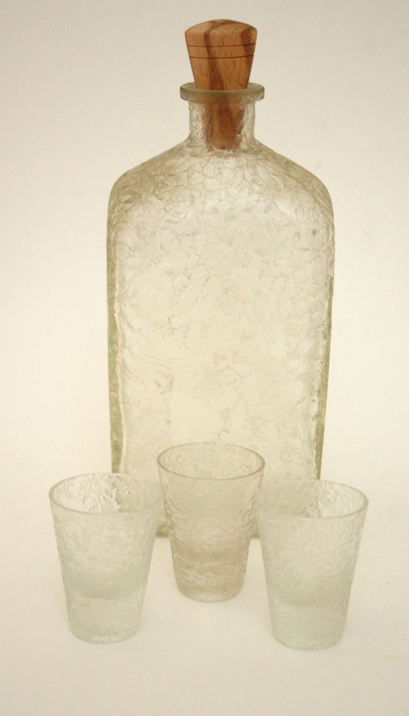 Krakelé mat kantineflaske med snapsebægre, Holmegaard