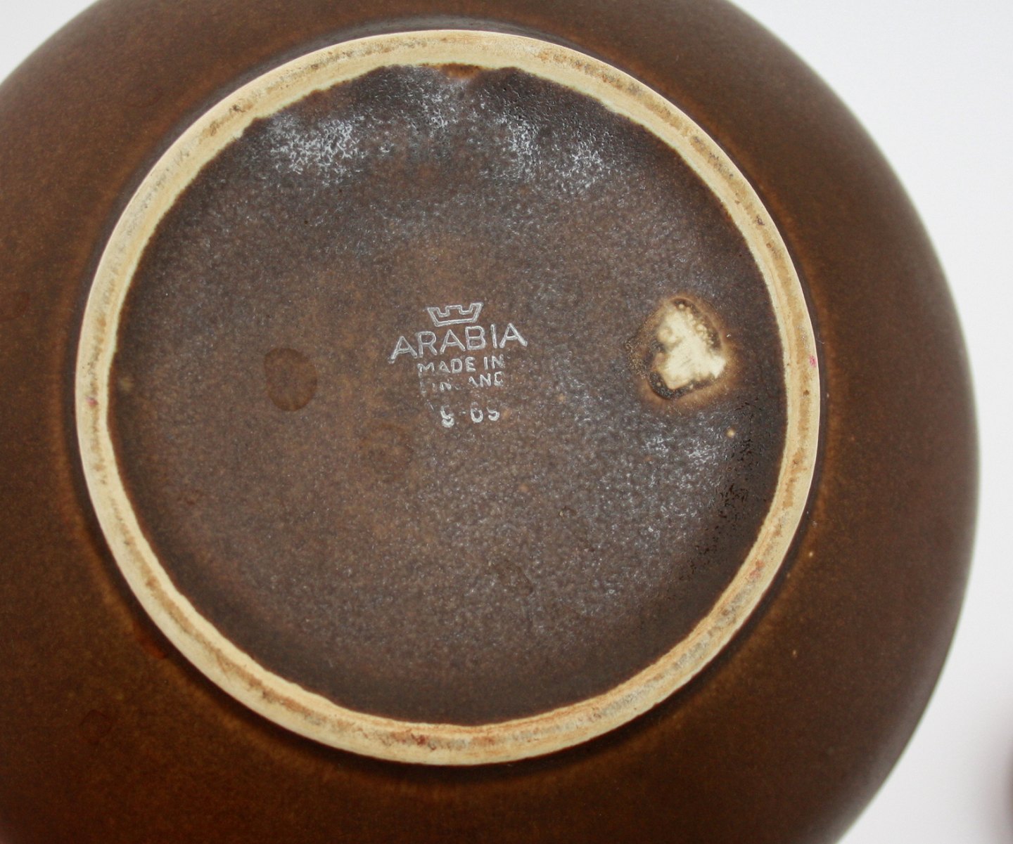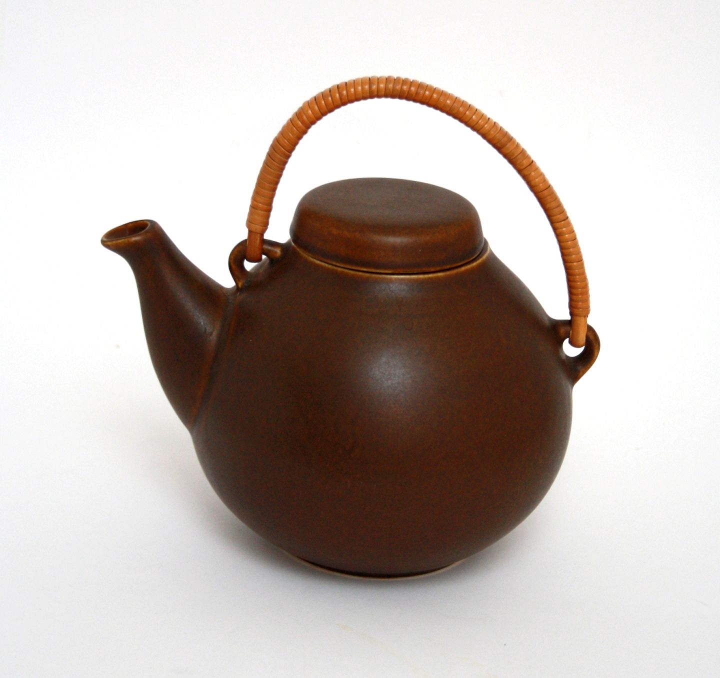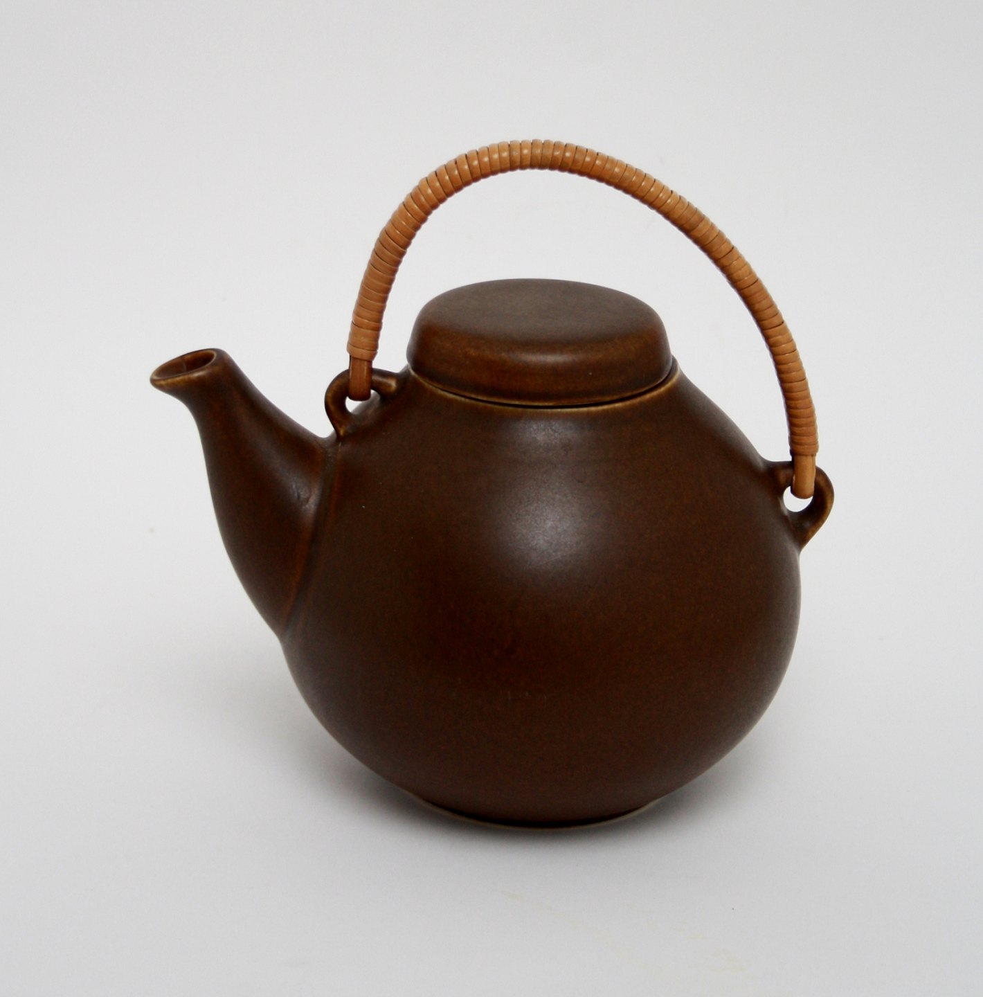 Arabia, Finland, Tekande i brun harepelsglasur med basthank, model GA1. Designet af Ulla Procopé i 1953. Højde uden hank 15 cm. Længde 21,5 cm. Perfekt stand. Pris: SOLGT