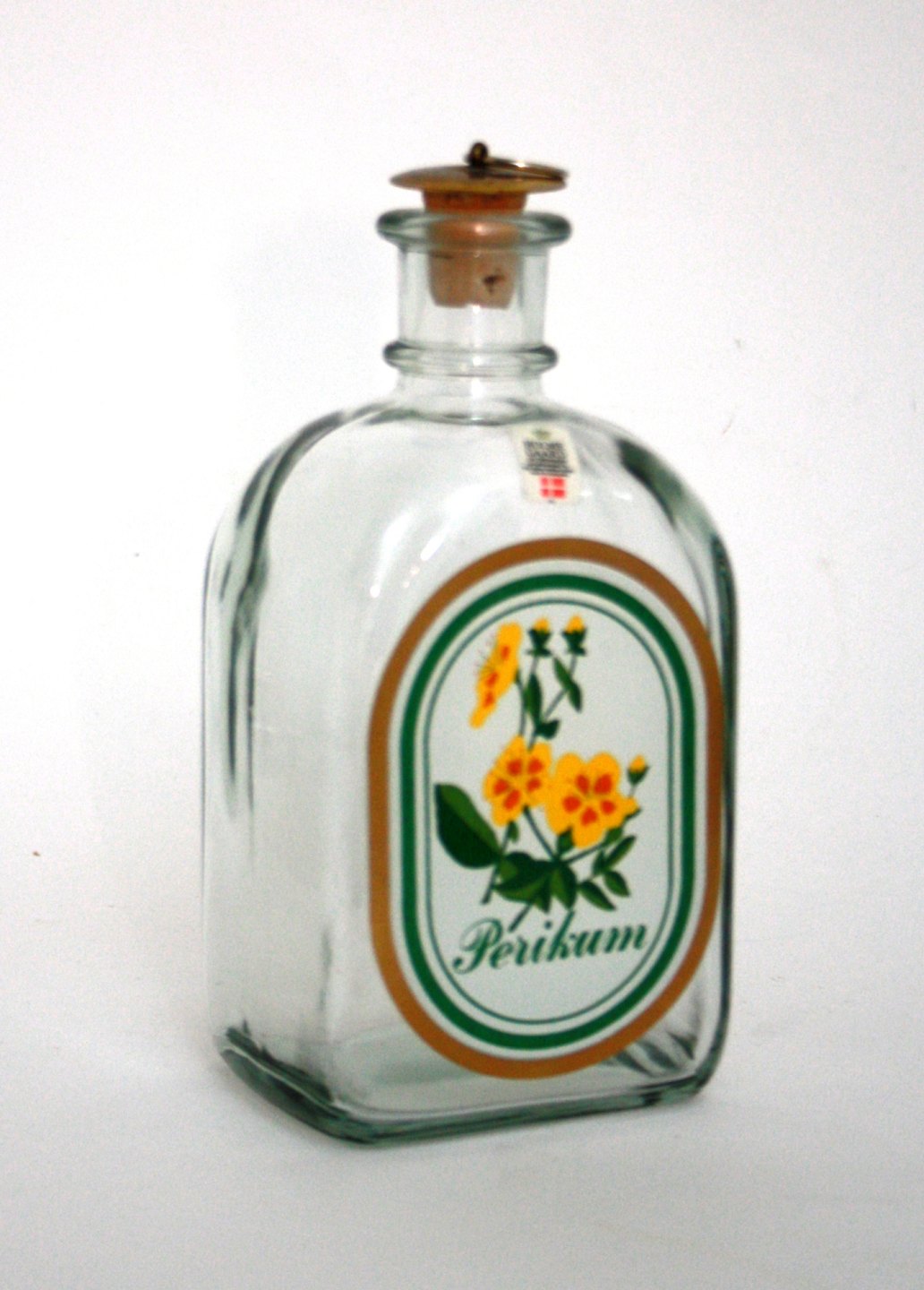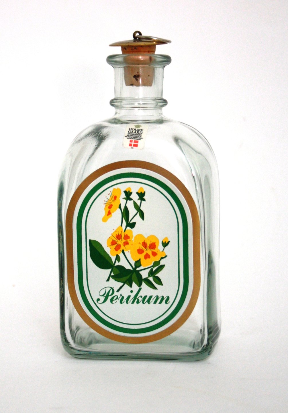 Holmegaard, kantineflaske med Perikum påtrykt. Højde 19,5 cm. Pris: SOLGT