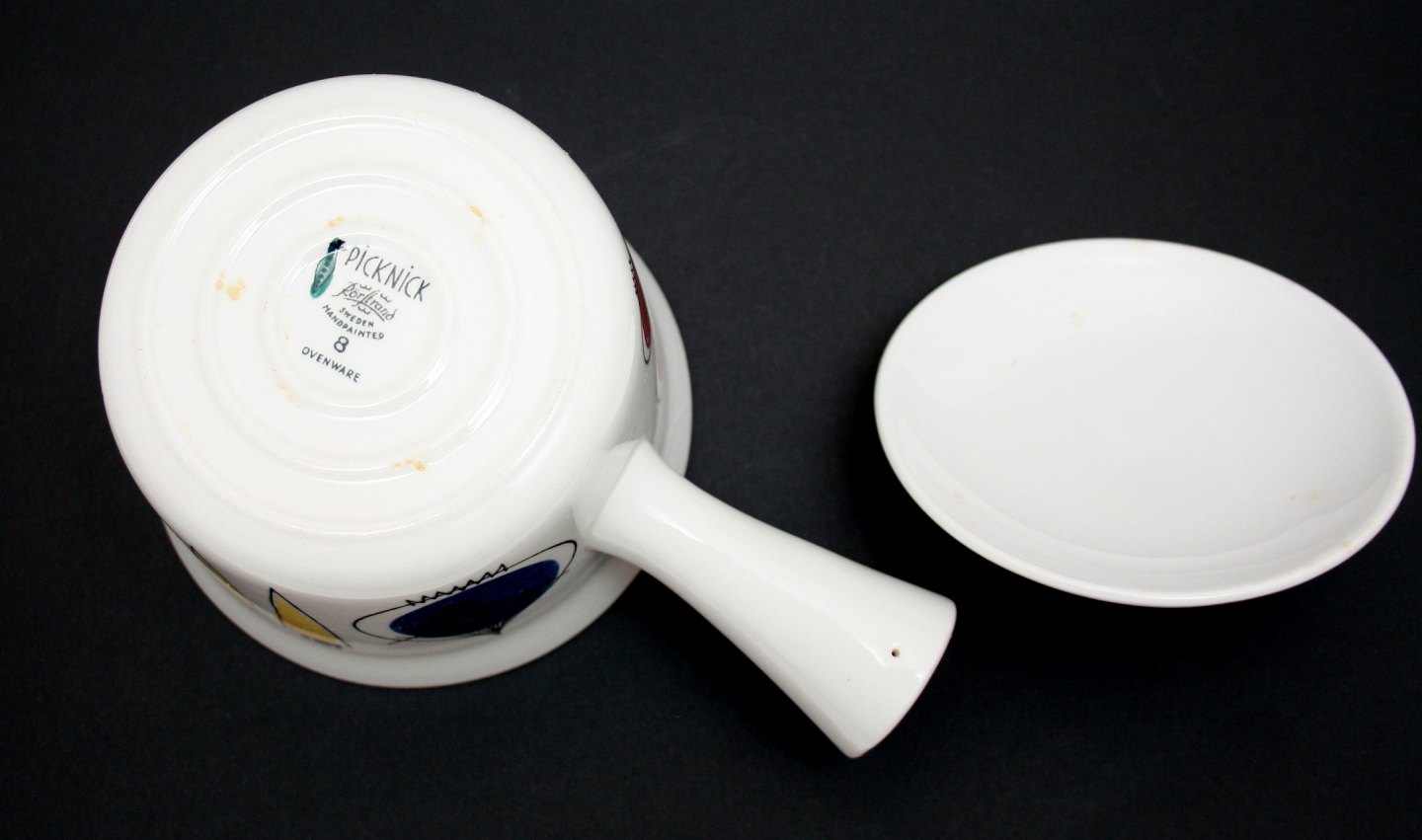 Rørstrand, Picknick. Stellet er designet af Marianne Westman og produceret i perioden 1956-69. Kasserolle med låg. Højde 11 cm. Længde 18,5 cm. Diameter 12,5 cm. God stand. Pris: SOLGT