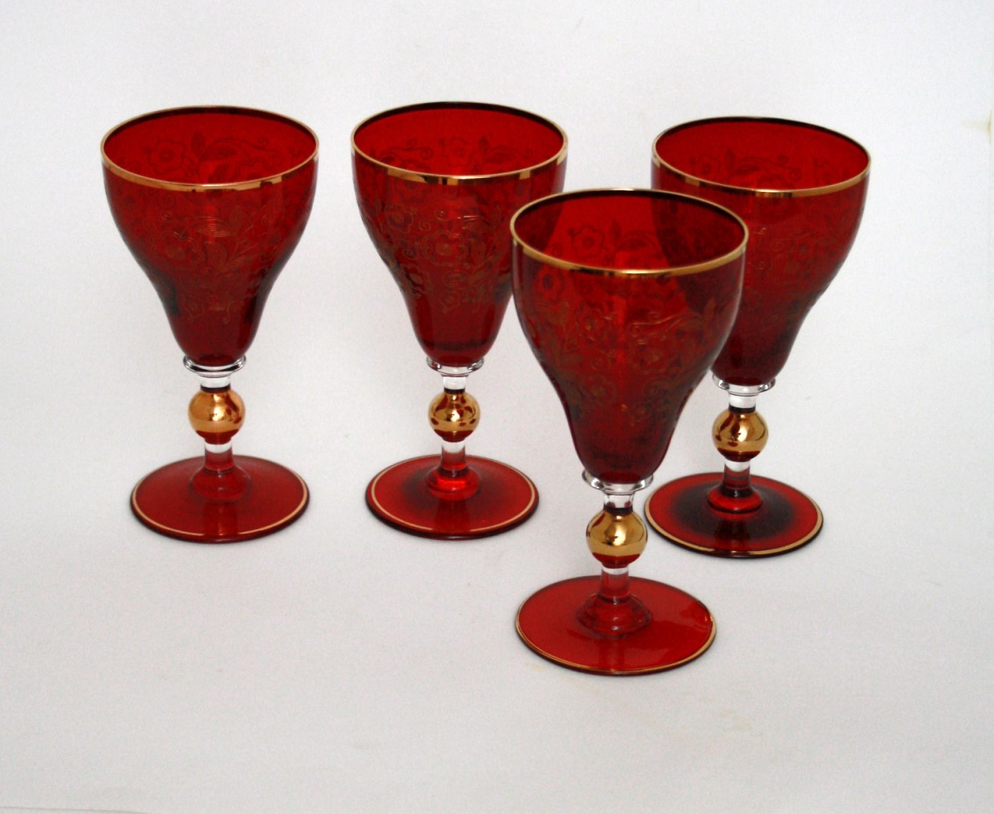 Røde Bøhmiske vinglas med guldciseringer