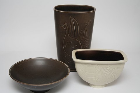 Skål, oval skål og vase, Solbjerg, Aluminia