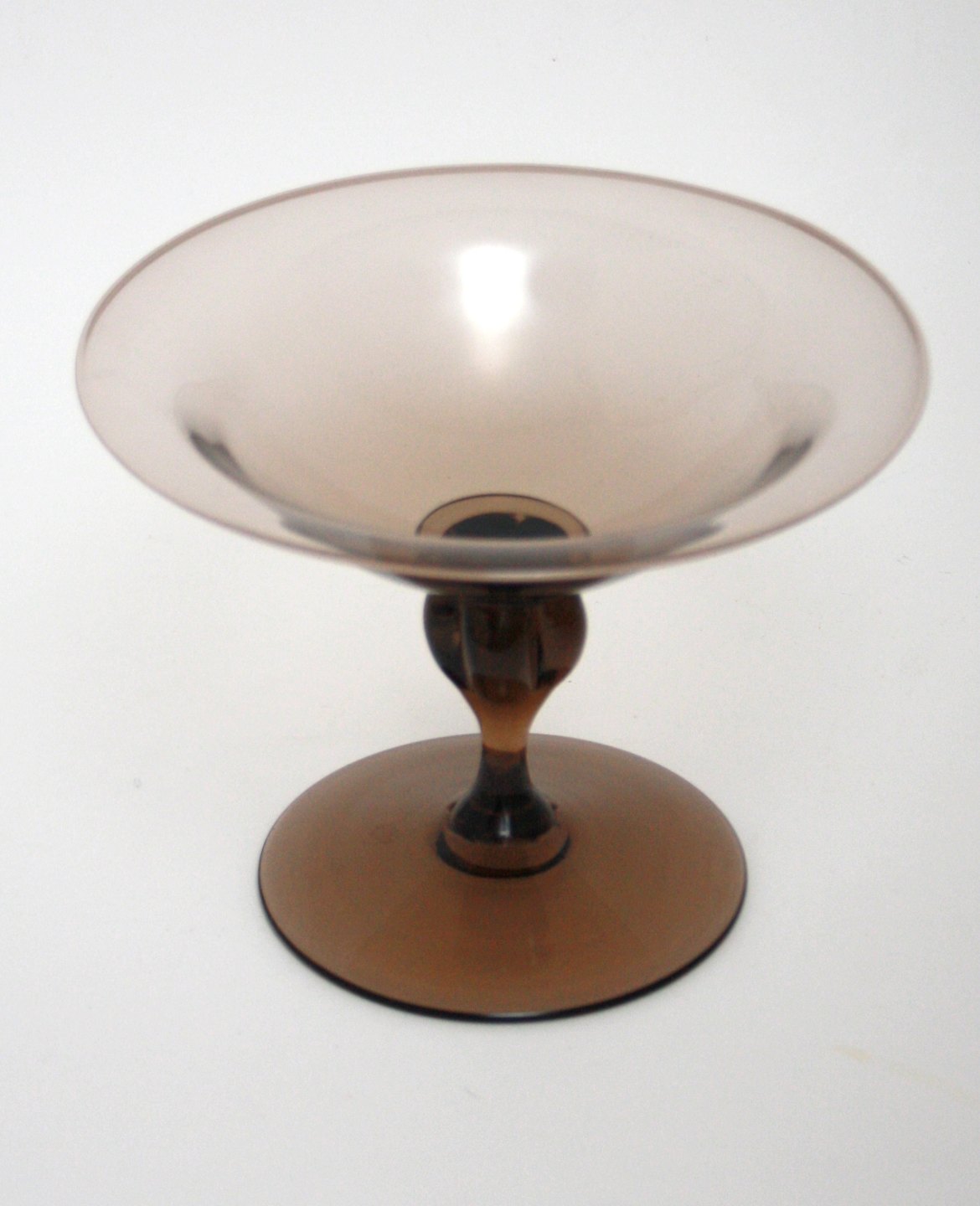 Holmegaard, Viol røgtopas glas, designet af Jacob E Bang. Fremstillet i perioden 1928-1940. Kandisopsats. Højde 12,7 cm. Diameter 17 cm. Perfekt stand. Pris: SOLGT