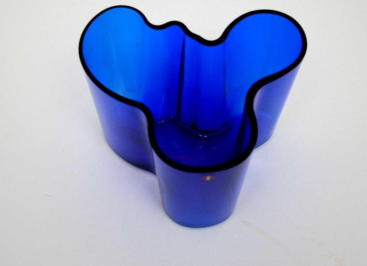 Iittala, Finland, Collection serien designet af Alvar Aalto, Koboltblå vase. Højde 16 cm. Største diameter 21 cm. Fremstår med ridser. Vasen er mørkere end på foto. Pris: SOLGT