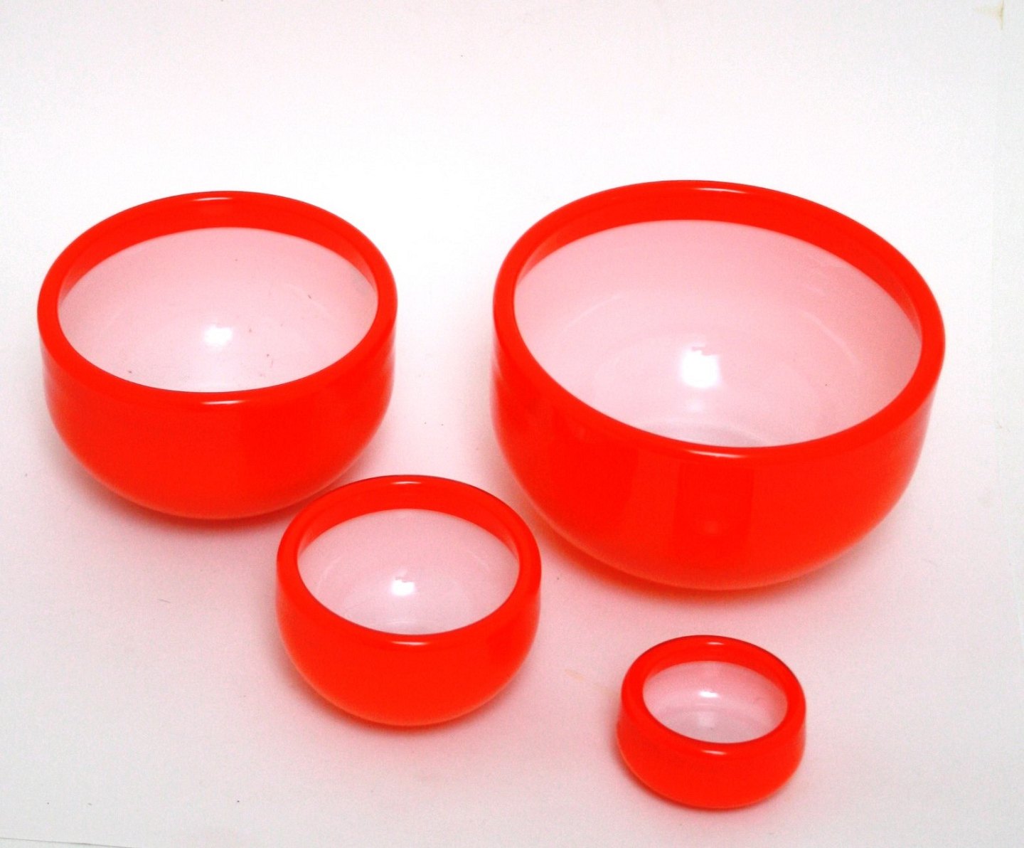 Holmegaard, Palet, Skåle i orange omfang og indvendig hvid glas. Designet af Michael Bang. Flot stand.