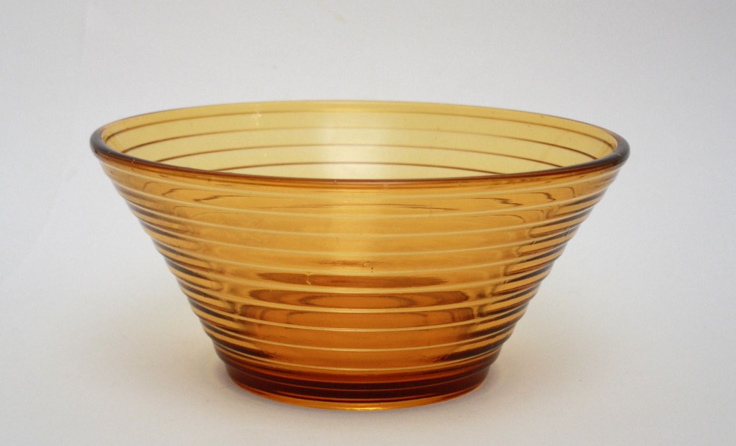 Holmegaard, Broksø ravgul, Skåle. Stor skål. Højde 11 cm. Diameter 24 cm. Pris: SOLGT Mellem skål. Højde 9 cm. Diameter 20,5 cm. Pris: SOLGT