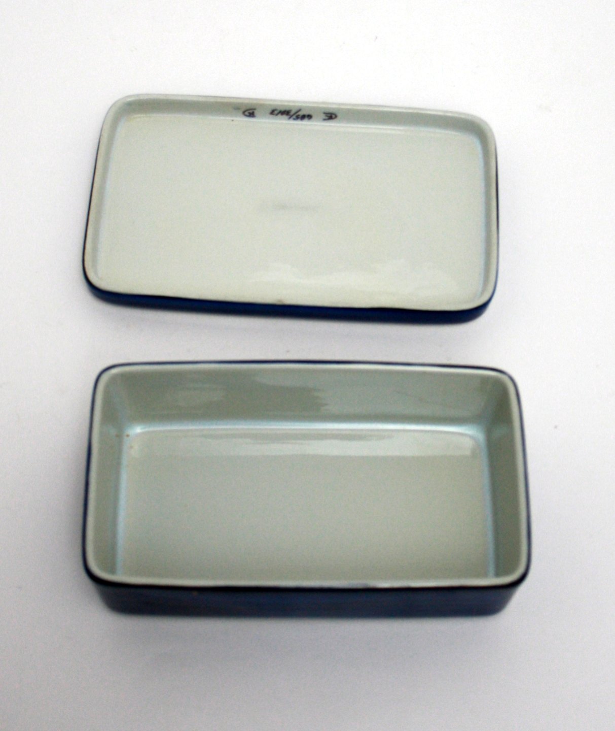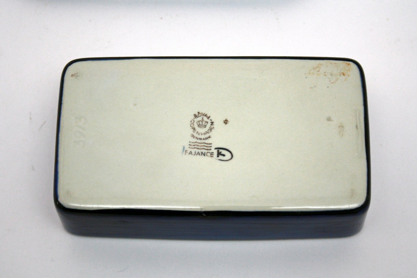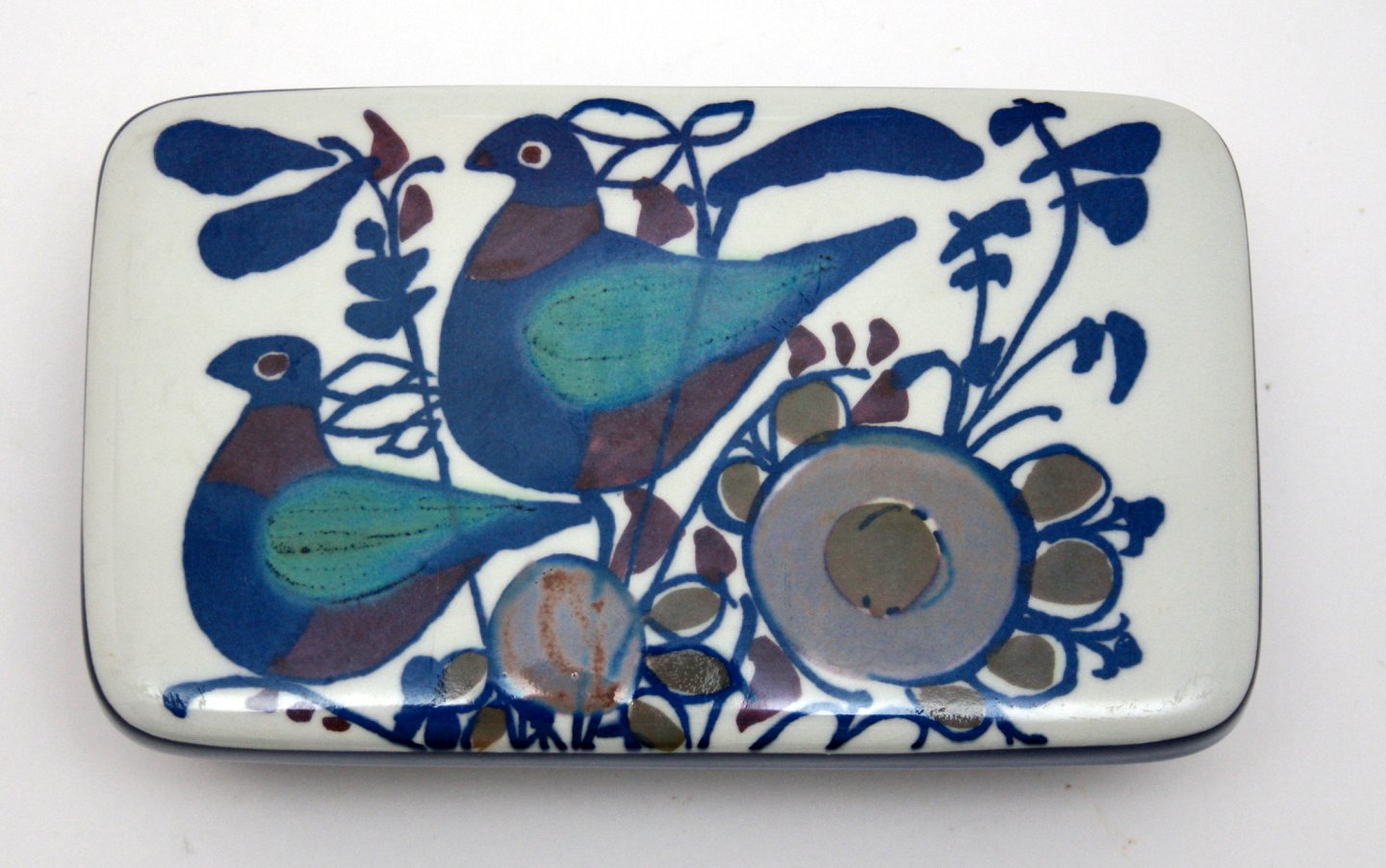 Royal Copenhagen, Tenera smørbox med fuglemotiv. dek. nr. 685/3913, designet af Kari Christensen. Højde 5 cm. Længde 16 cm. Bredde 7 cm. III. sortering fin stand. Pris: SOLGT