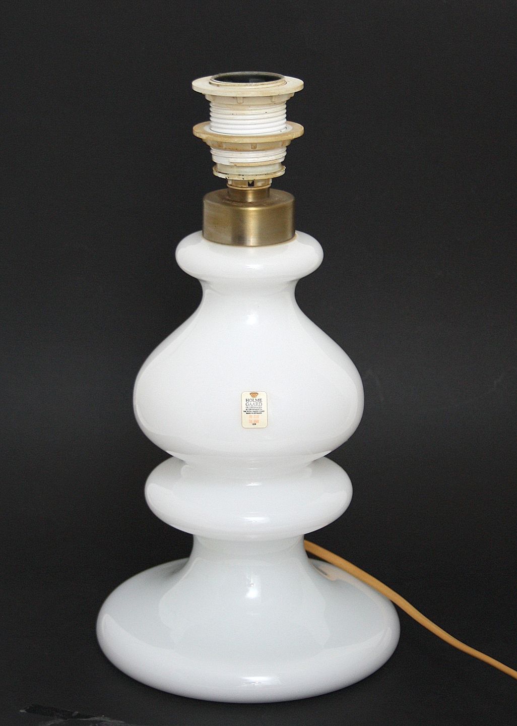 Holmegaard, Laura bordlampe opalinehvid glas. Designet af Per Lütken i 1978 fremstillet på Fyens Glasværk. Højde 31,5 cm. Ledning misfarvet gul. Pris: SOLGT