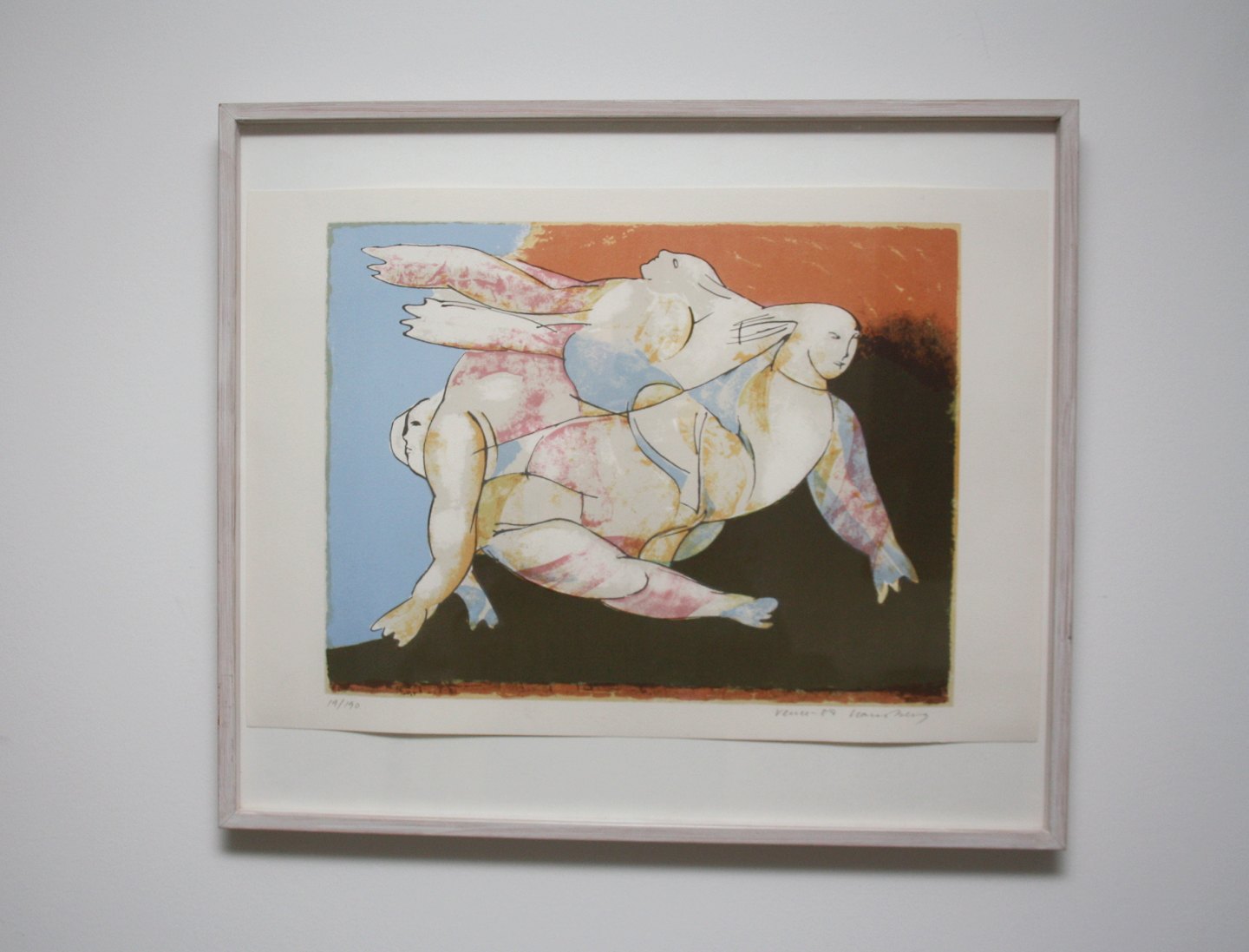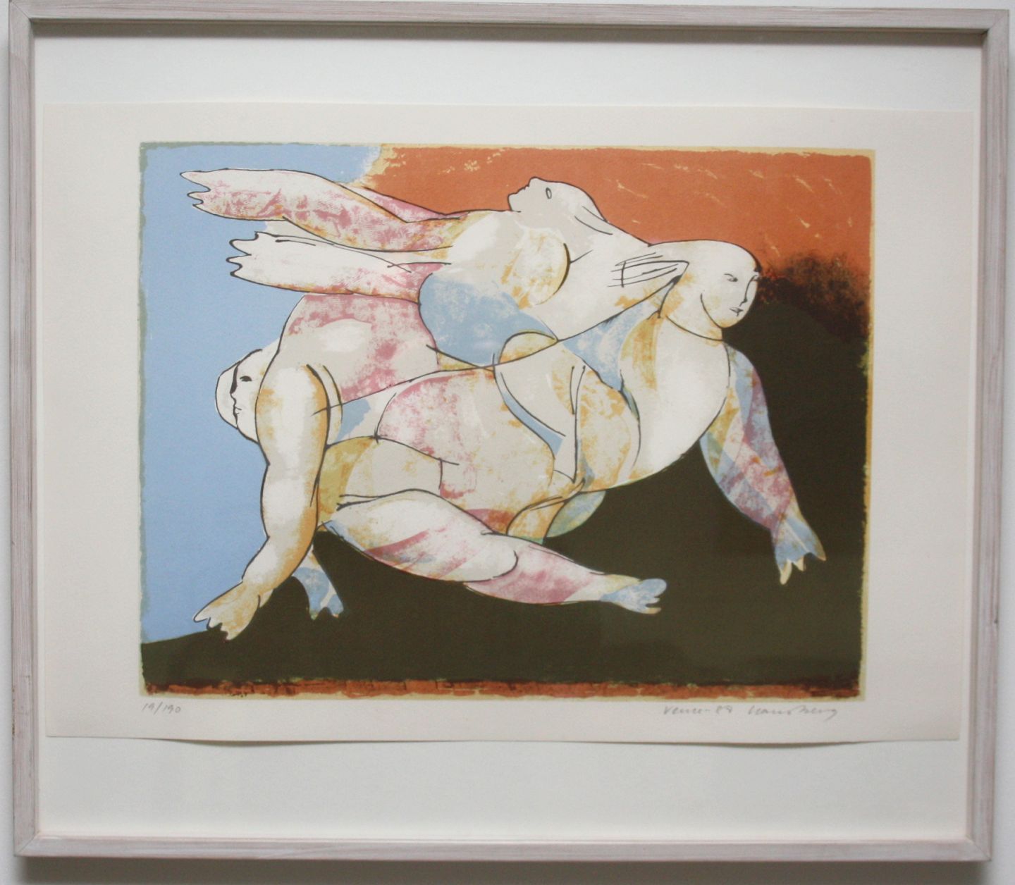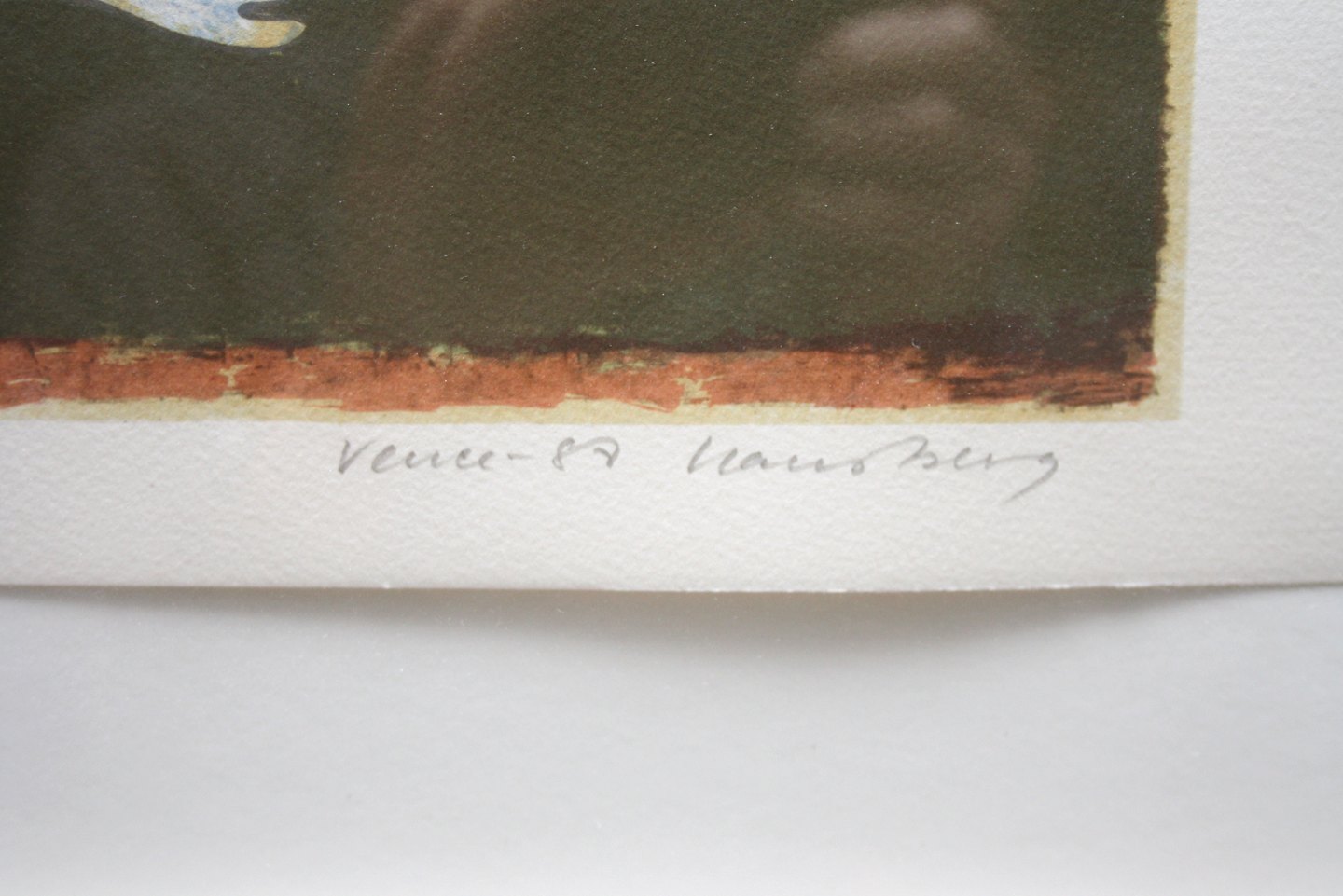 Hans Berg, Litografi Vence 1987 nr. 19/190. Hans Berg (1938-2010). Hans Berg var autodidakt, kendt for portræt collager fra Folketinget. Er bl.a. udstillet på Statens Museum for kunst og har været med på mange udstillinger.