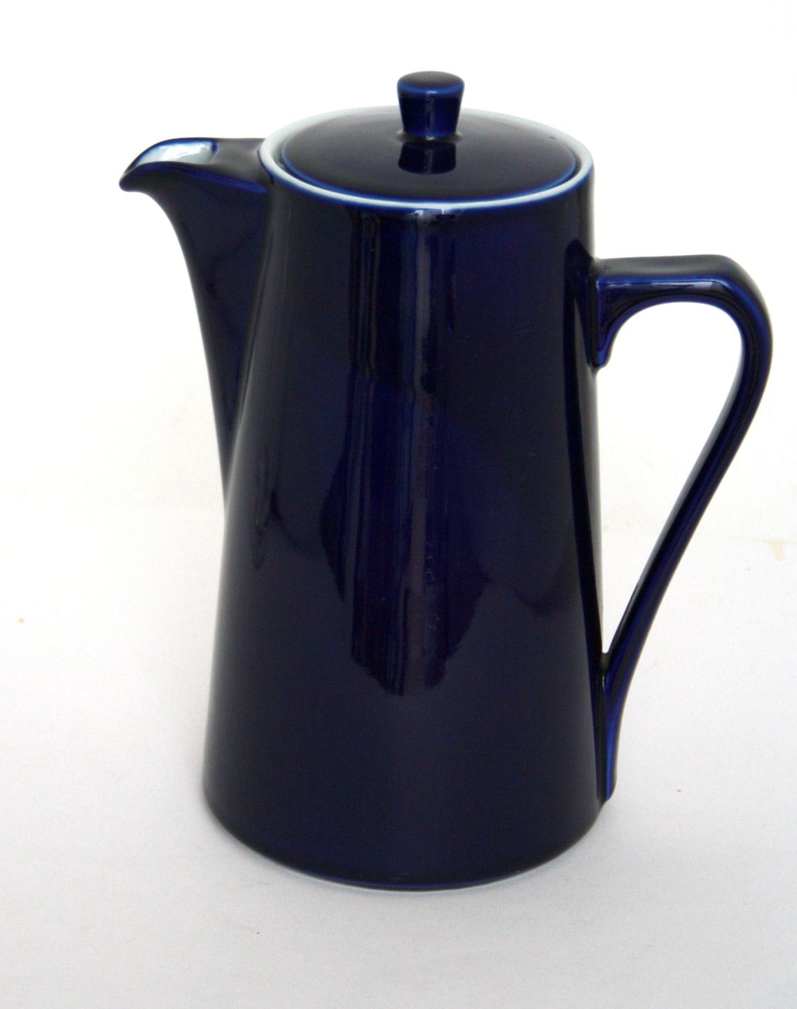 Lyngby Dan-ild med glasurfarver, blå 2600. Design Axel Brüel i 1958. Kaffekande med låg. Højde 20 cm. Længde 17 cm. Pris: SOLGT
