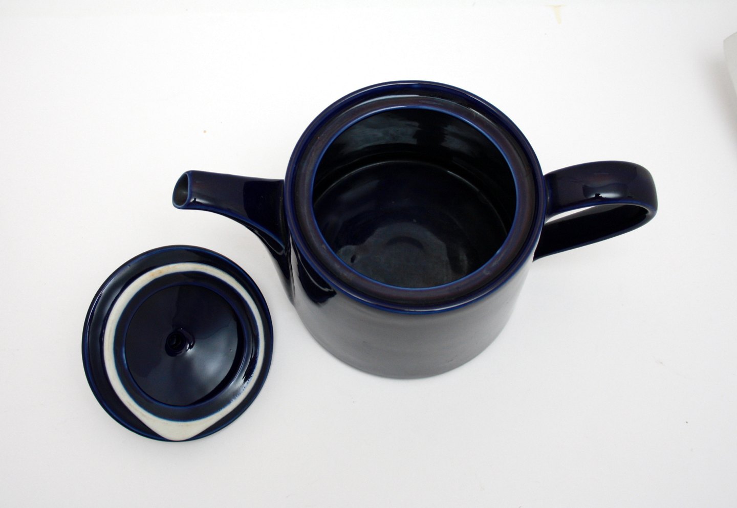 Lyngby Dan-ild med glasurfarver, blå 2600. Design Axel Brüel i 1958. Tekande med låg. Højde 14,5 cm. Længde 23,5 cm. Pris: SOLGT