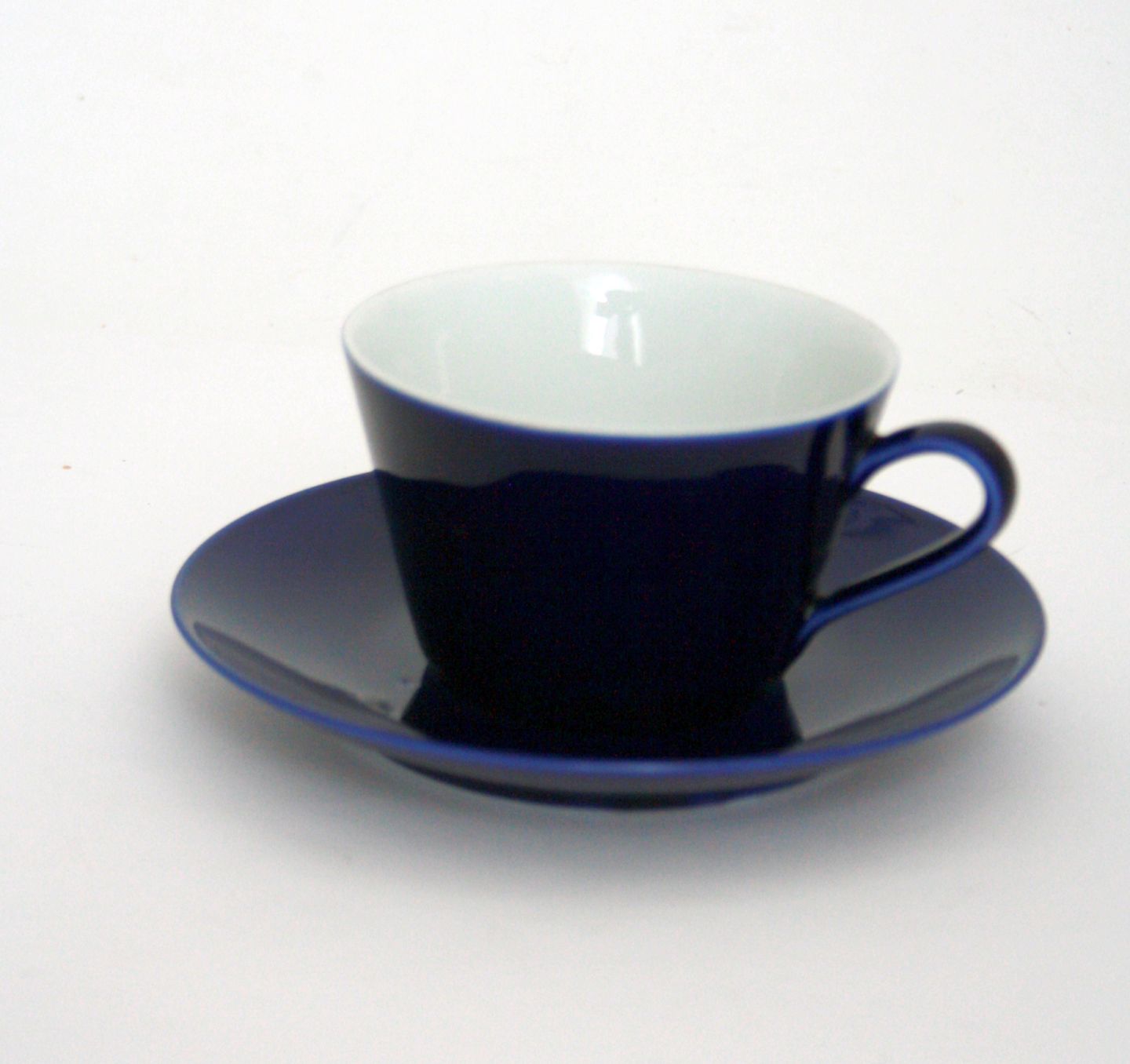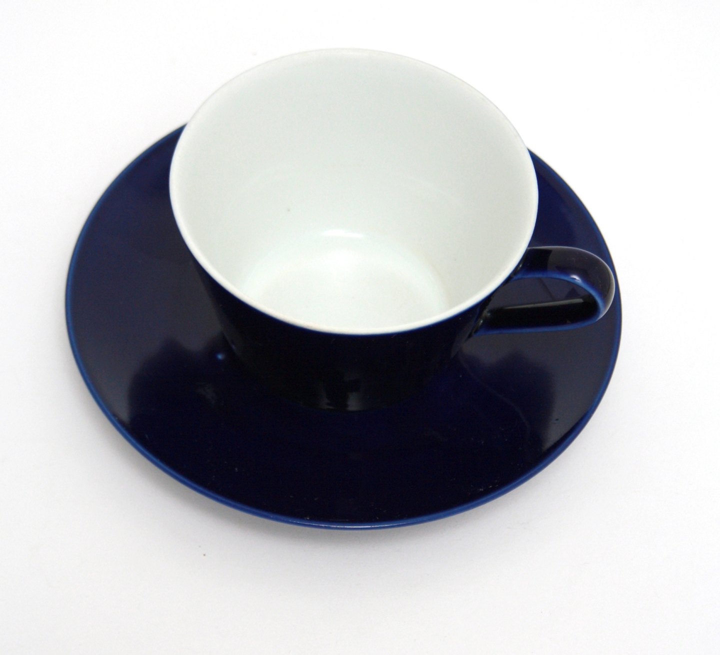 Lyngby Dan-ild med glasurfarver, blå 2600. Design Axel Brüel i 1958. Tekop med underkop. Højde 6 cm. Pris: SOLGT