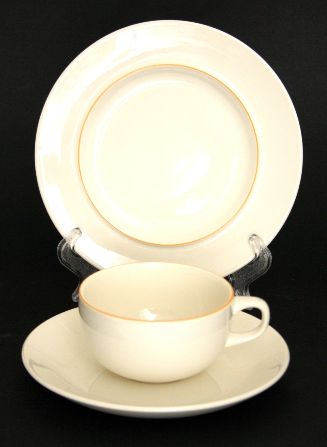 Royal Copenhagen fajance, 4 All seasons kop med gul kant og underkop.