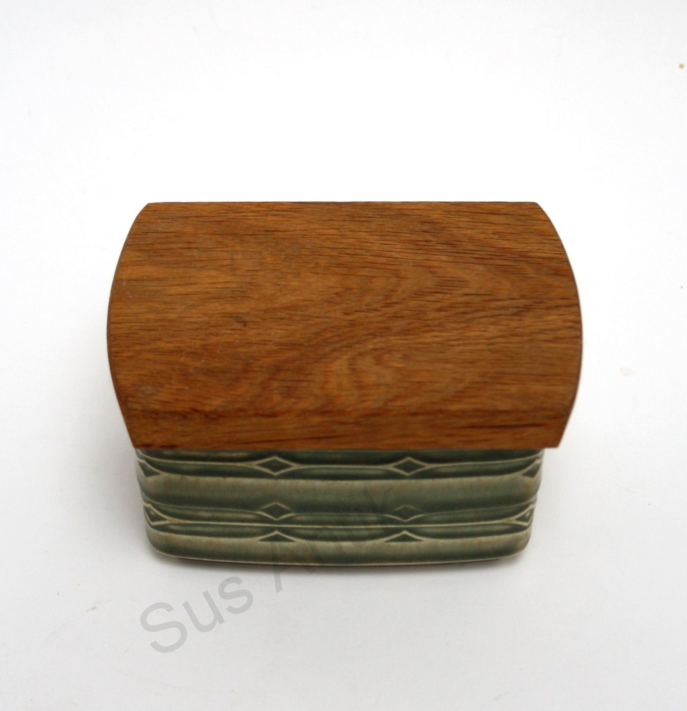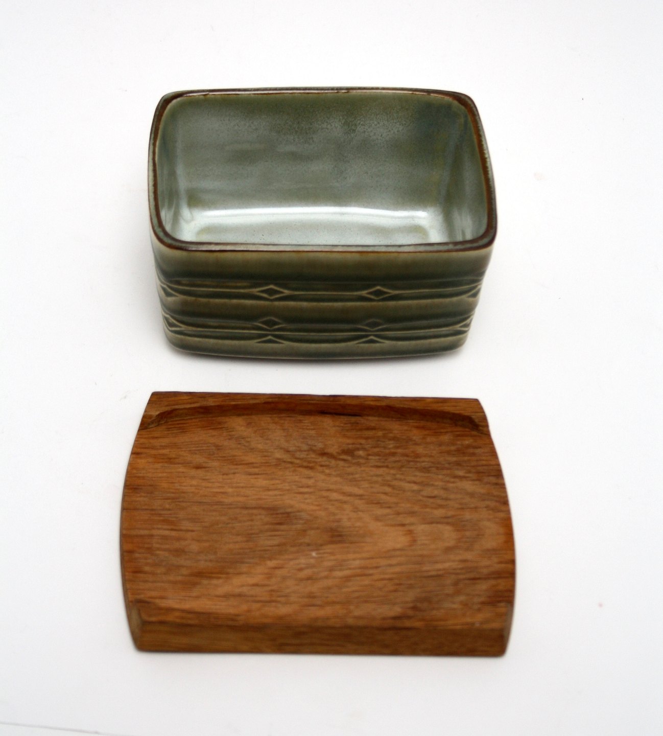 Bing og Grøndahl, Rune, Smørbox med teaklåg. Højde 7 cm. Længde 13 cm. Pris: SOLGT