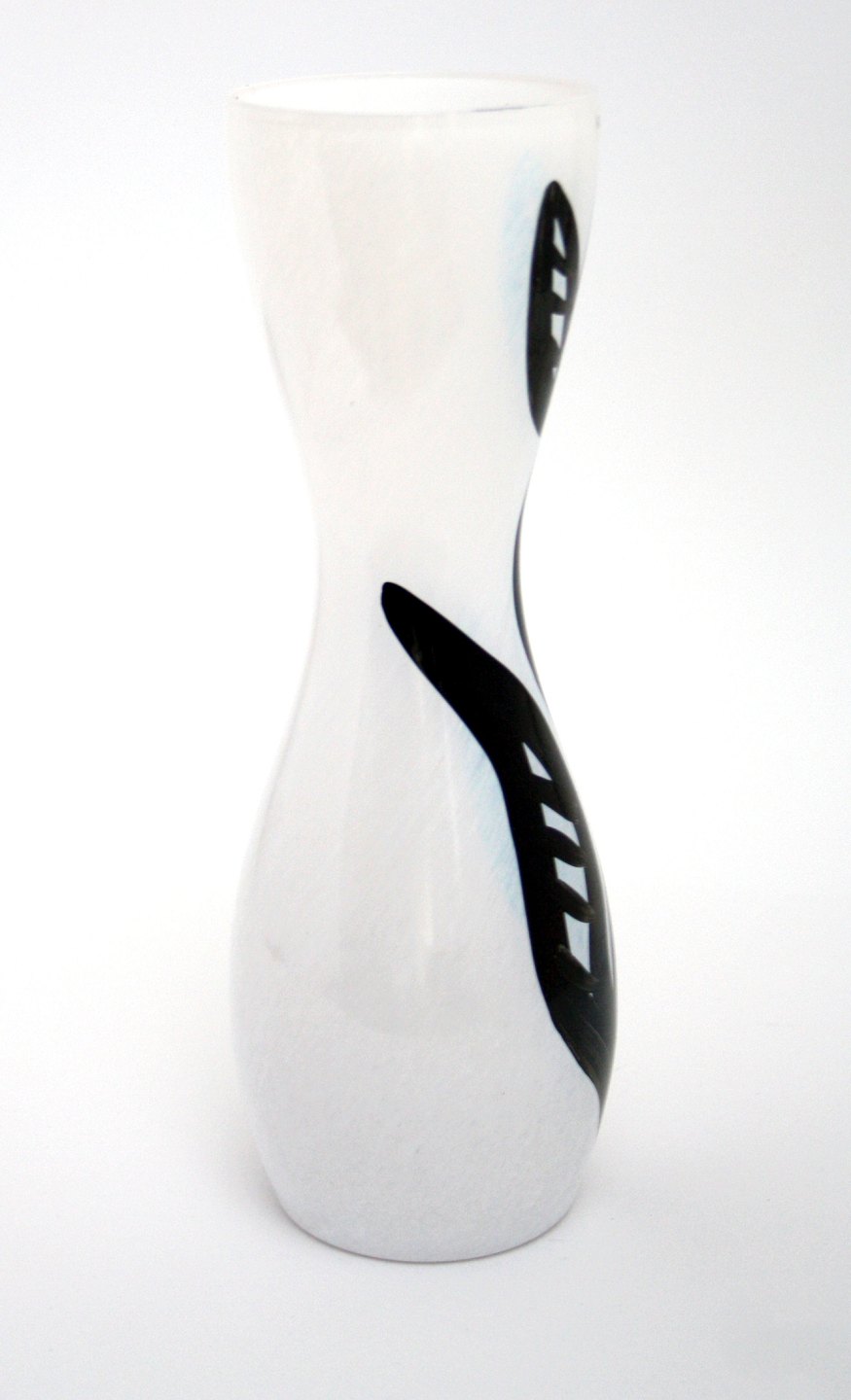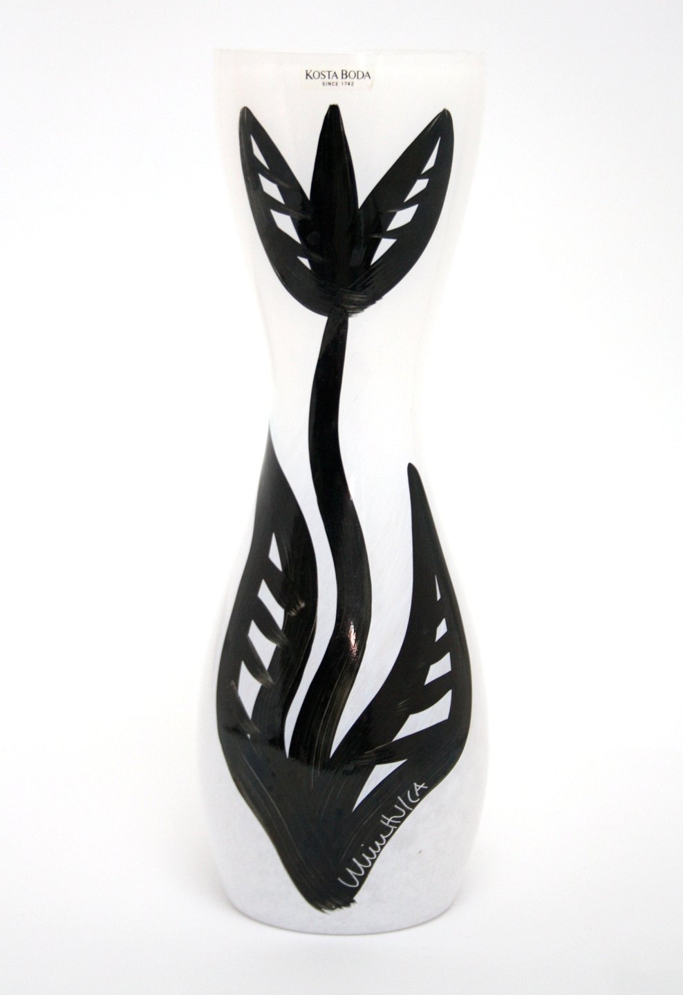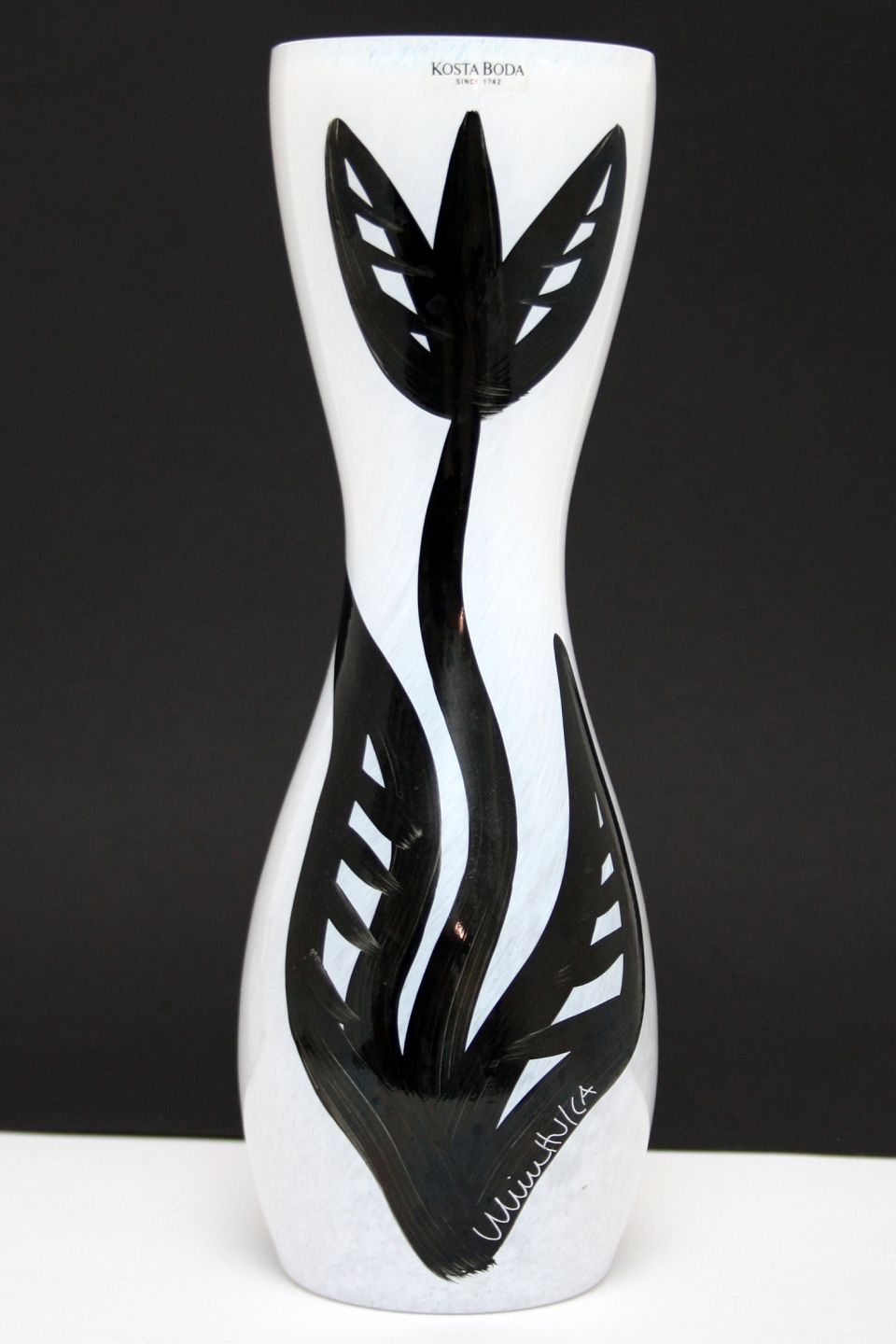 Kosta Boda, Tulipa vase i hvid og sort, designet af Ulrica Hydman-Vallien. Signeret. Højde 26 cm. Øverste diameter 8 cm. Pris: SOLGT