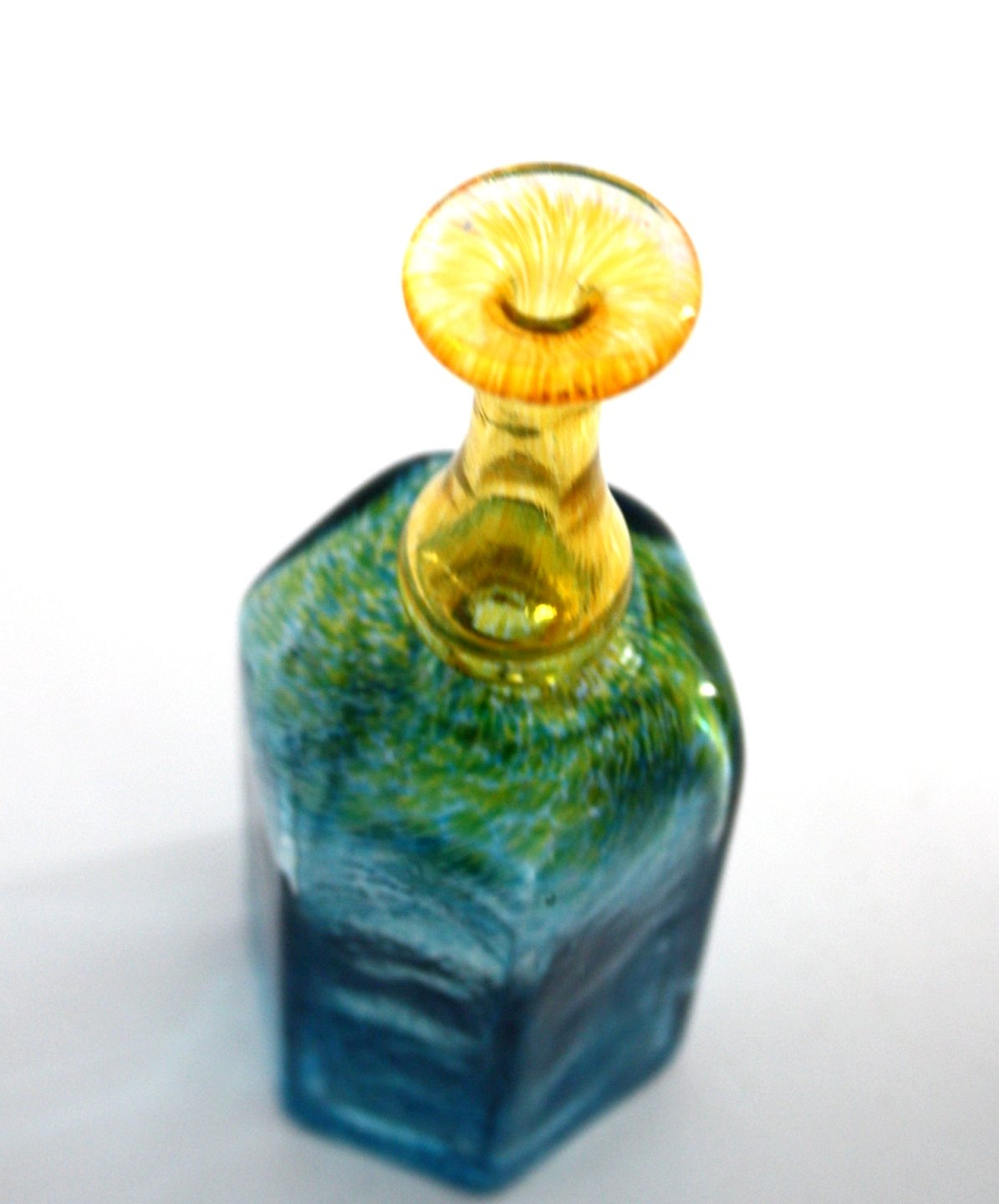 Kosta Boda, Sweden, Miniature flaske i gul og blå glas. Designet af Bertil Vallien. Højde 15,5 cm. Signeret Kosta Boda Artist Collection, B. Vallien 47839. Fin stand. Pris: SOLGT