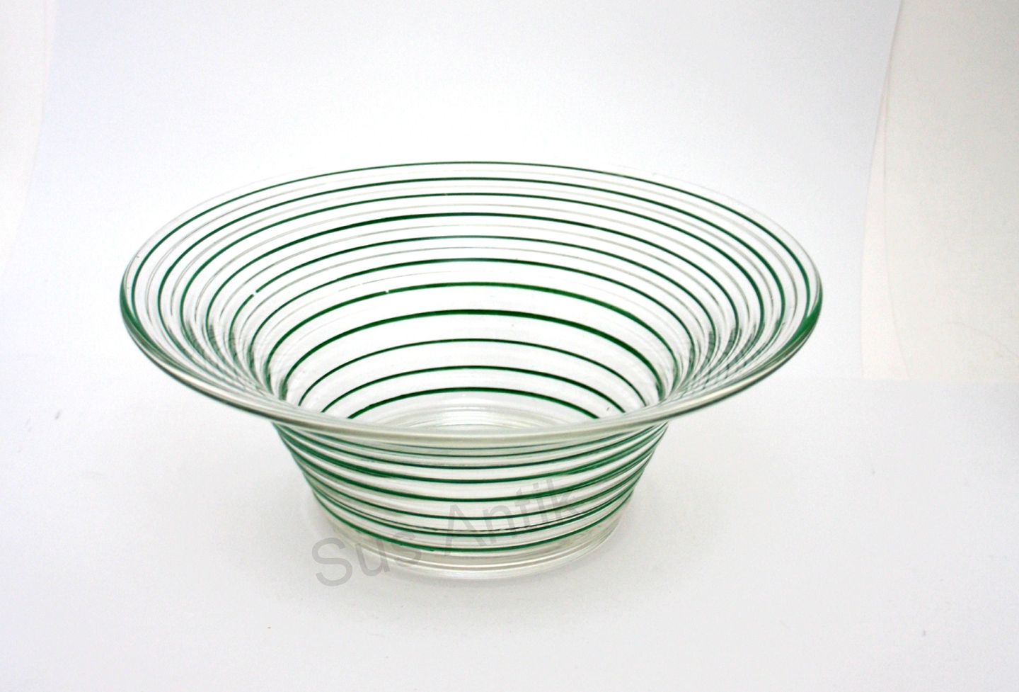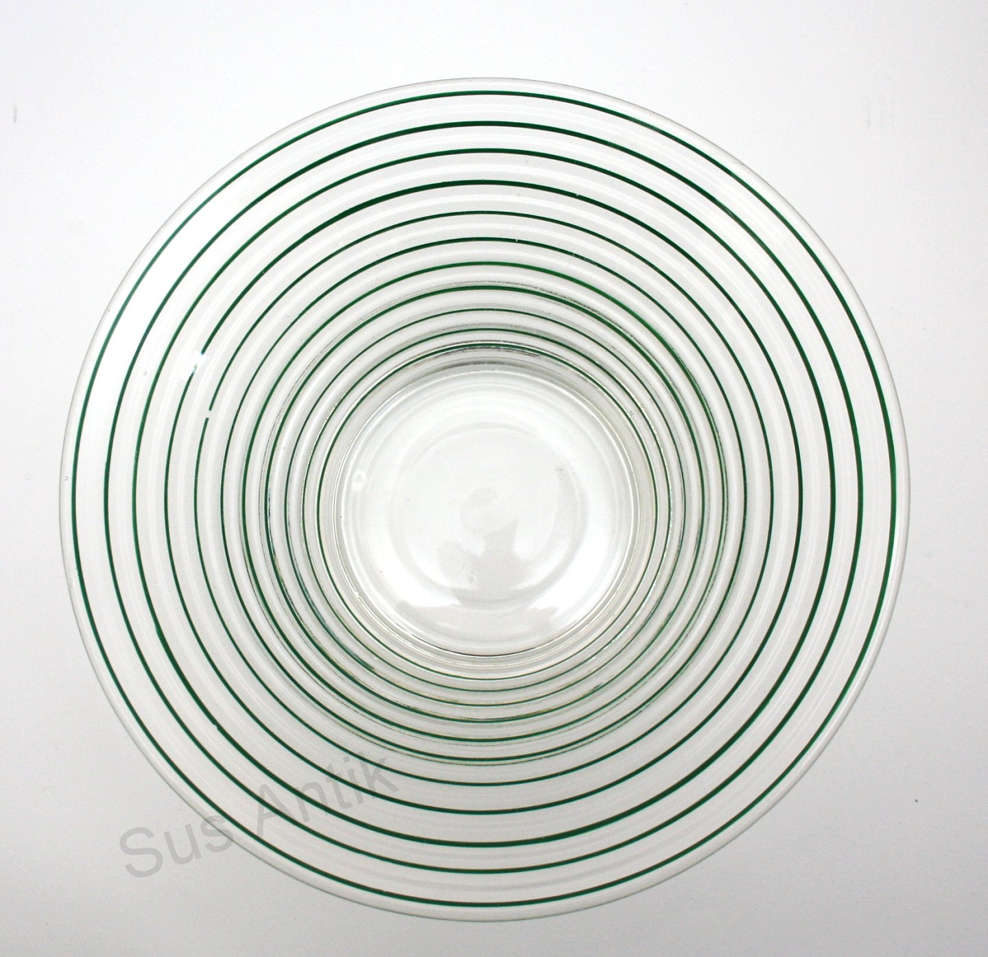 Holmegaard, Broksø grønstribet presset glas 1938-1941, designet af Jacob E Bang. Stor skål. Diameter 26 cm. Højde 10,5 cm. Almindeligt brugsslid. Pris: SOLGT
