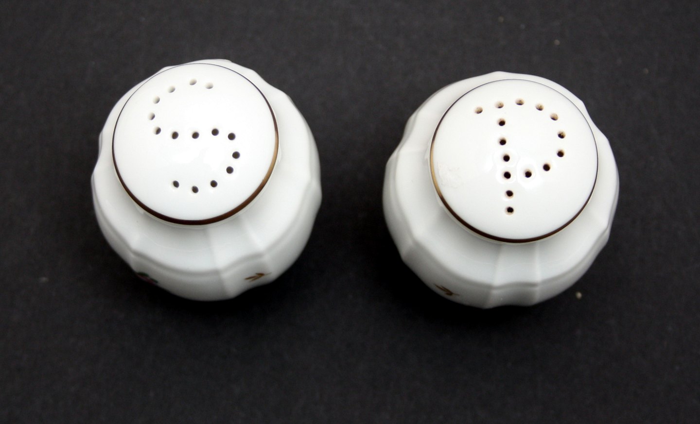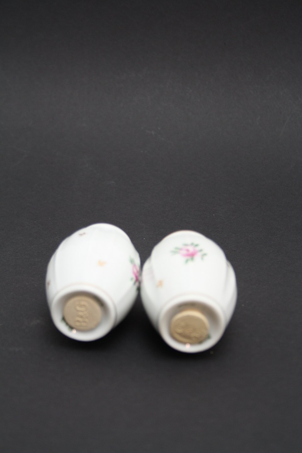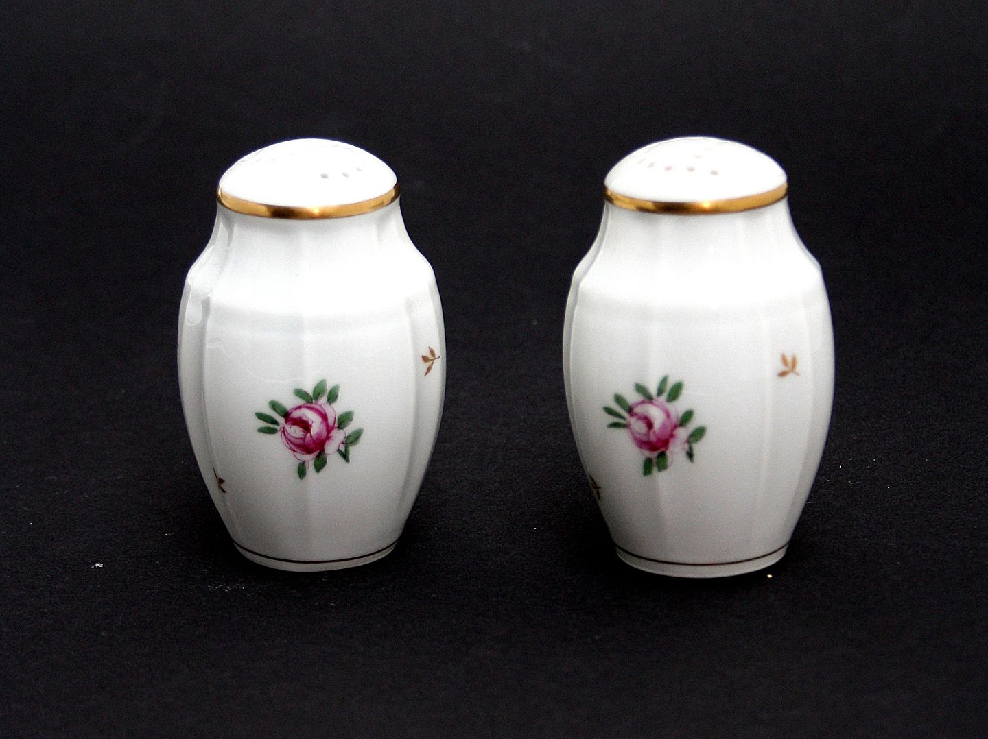 Bing & Grøndahl, Roselil, Salt og Peber sæt. Rosemønster på Offenbach stel. Nr. 52A. Højde 6,5 cm. Flot stand. I. sortering. Pris: SOLGT Tilkøb nye gummipropper 25 kr. for et par.