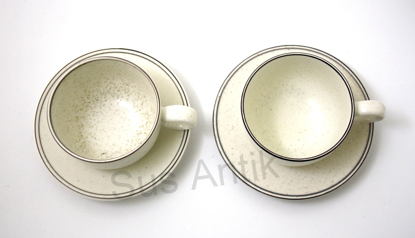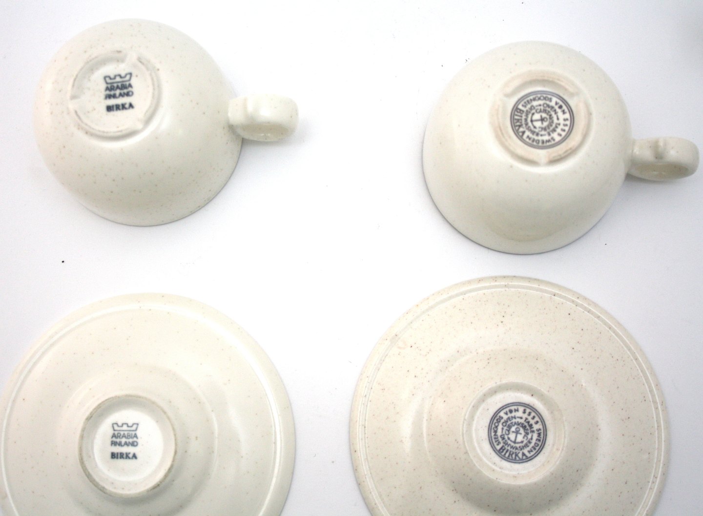 Gustavsberg senere Arabia, Birka, kaffekop med underkop. Designet af Stig Lindberg. Produceret i perioden 1973-1987. Mærke: Gustavsberg Stengods VDN S555 Sweden, owen, table, dishwater. Mærke: Arabia Finland.