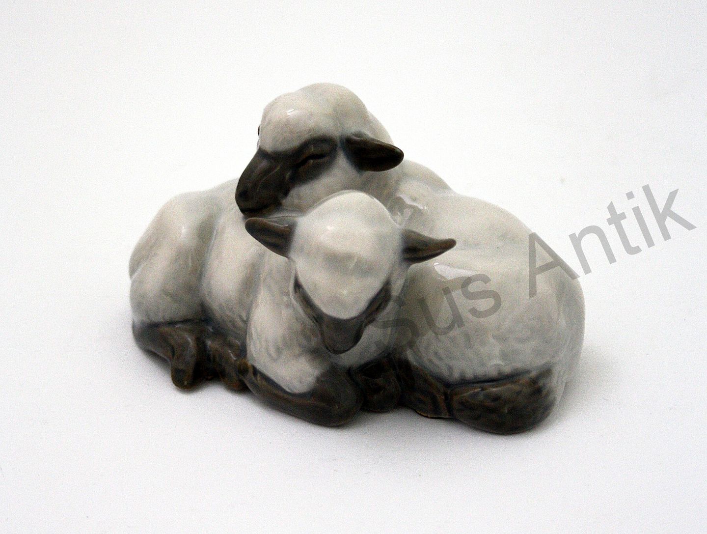 Royal Copenhagen, 2 lam der hviler. Nr. 2769. Designet af Knud Kyhn. Længde 10 cm. Højde 5 cm. I. sortering. Pris: SOLGT