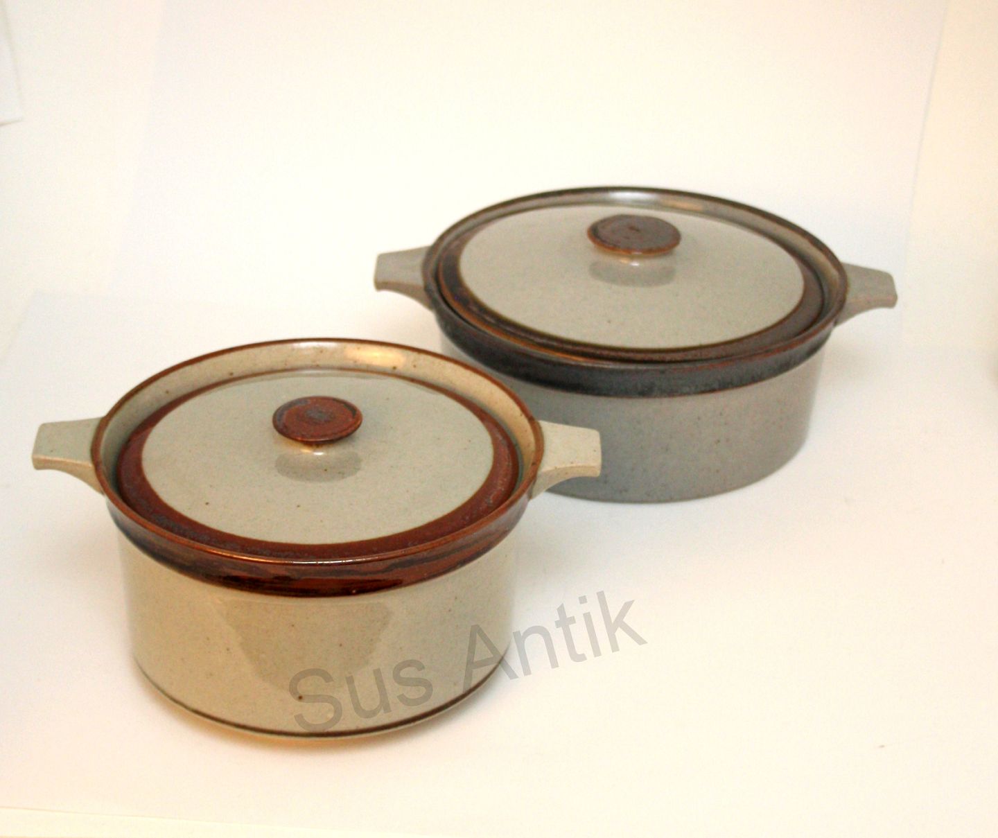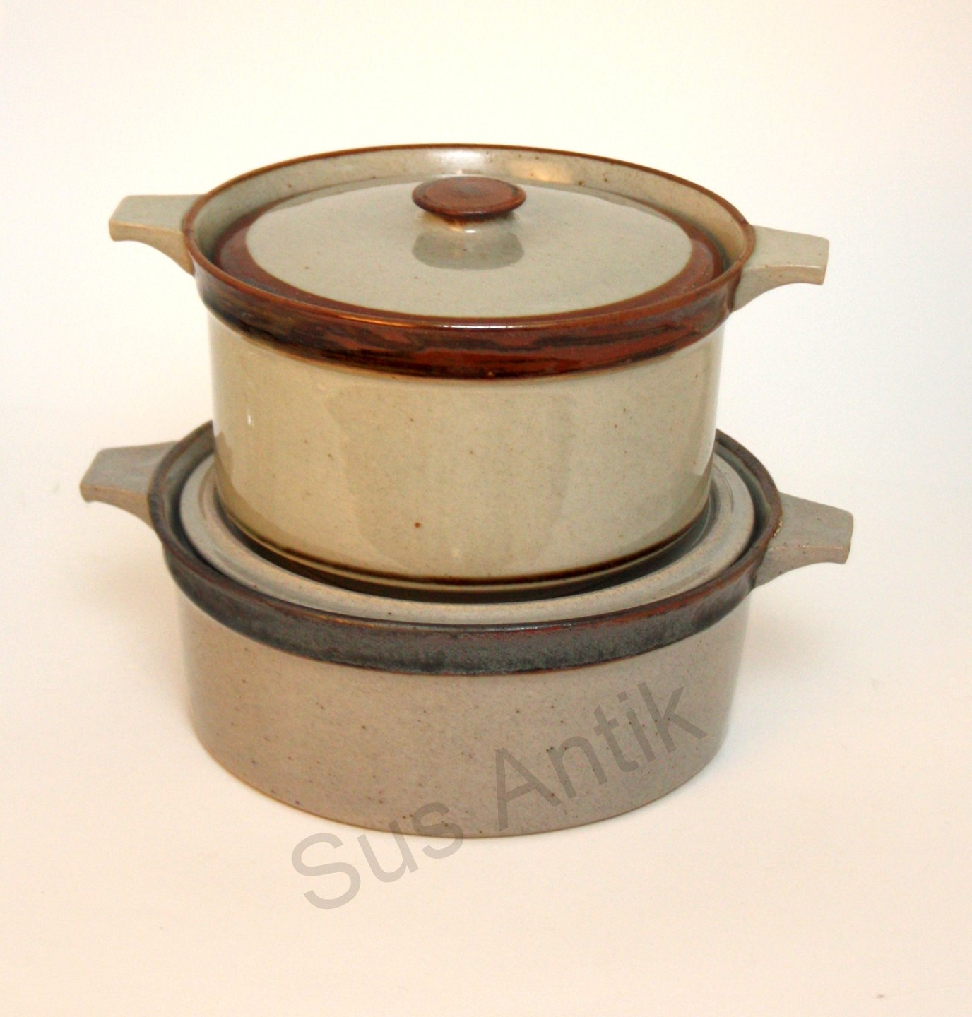 Knabstrup, Ingrid stentøjsstel grå glasur med brun kant. Designet af den tyske kunstner Christine Konschak, som var tilknyttet Knabstrup i perioden 1967-1970.