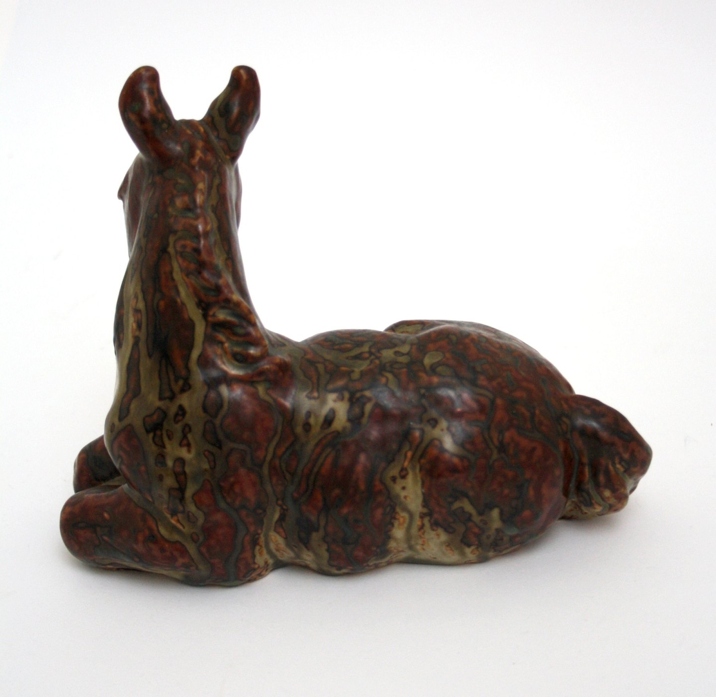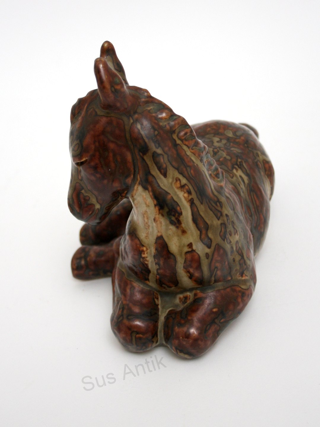 Royal Copenhagen, Liggende føl i sung glasur designet af Knud Kyhn i 1950'erne. Formnr. 21516. Højde 16 cm. Længde 19 cm. I. sortering. Perfekt stand. Pris: SOLGT
