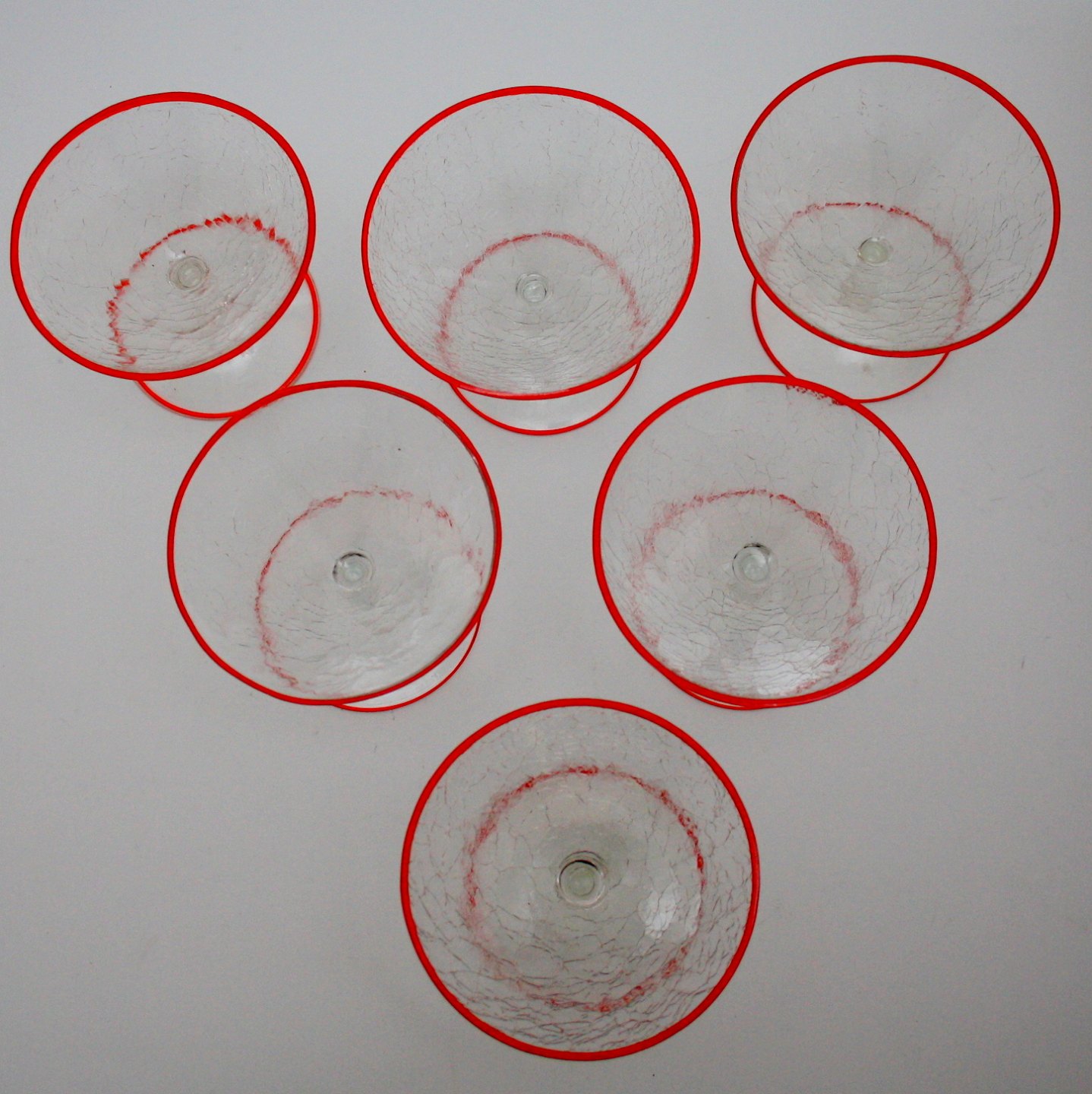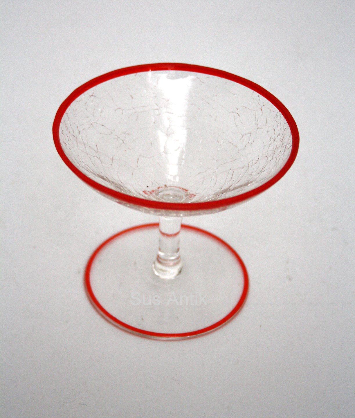 Cocktail eller likørglas. Cracquelé med rød emaljeret kant. Højde 7 cm. Diameter 8,5 cm. Pris: SOLGT