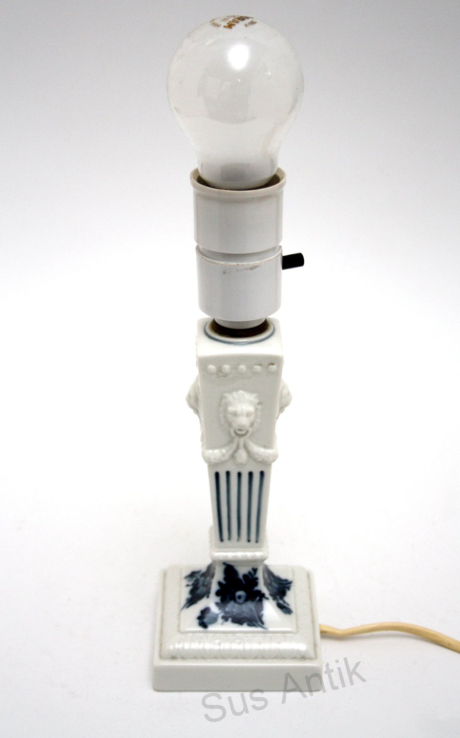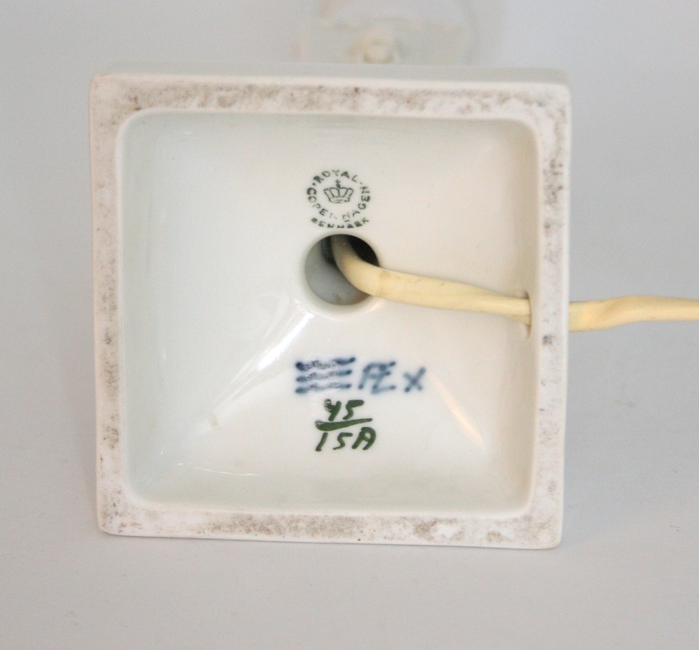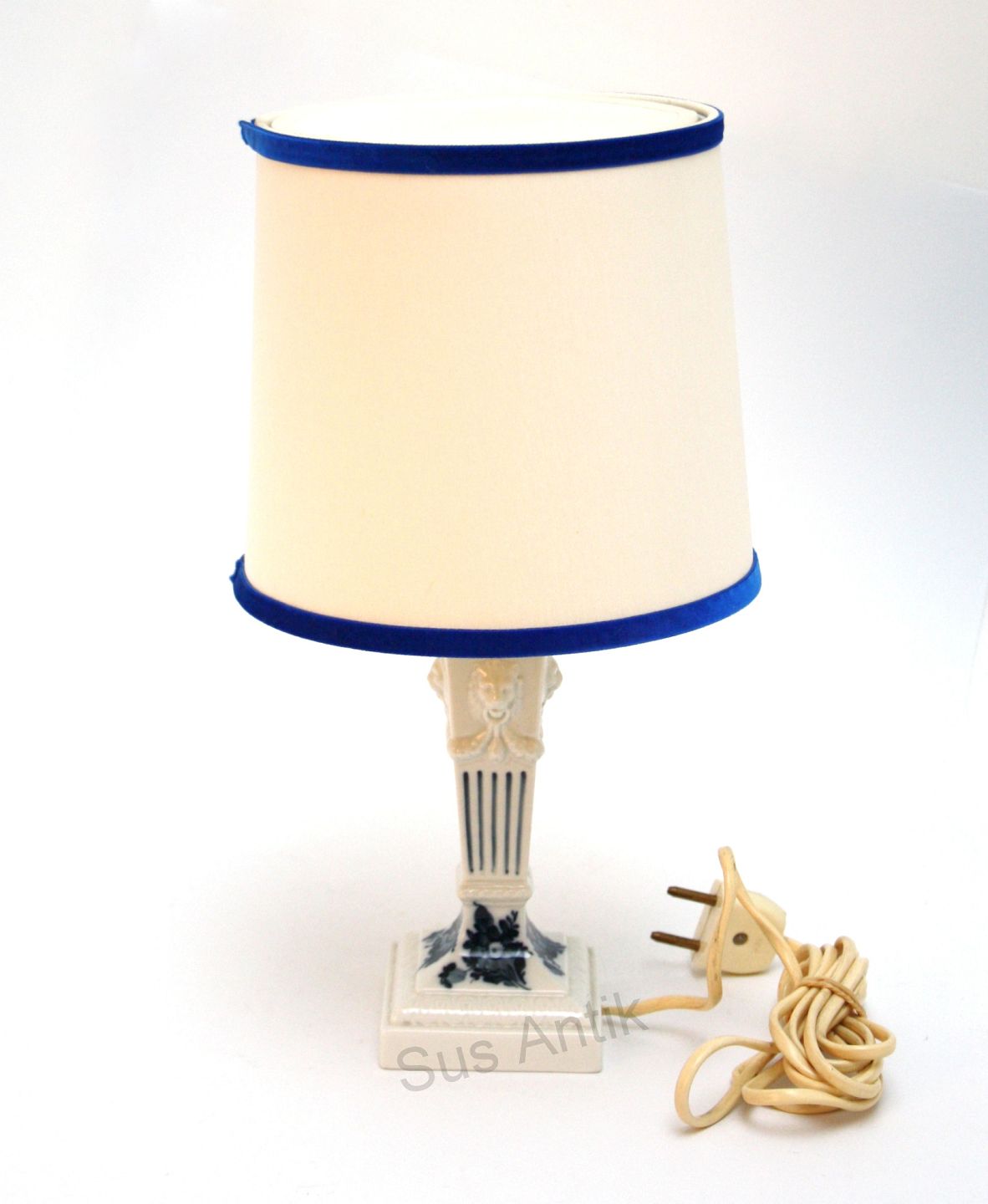 Royal Copenhagen, Blå Blomst (blå buket) bordlampe med skærm. Designet af Thorkild Olsen. Nr. 45/15A. Højde incl. fatning 23,5 cm. Højde incl. skærm 32,5 cm. Pris: SOLGT