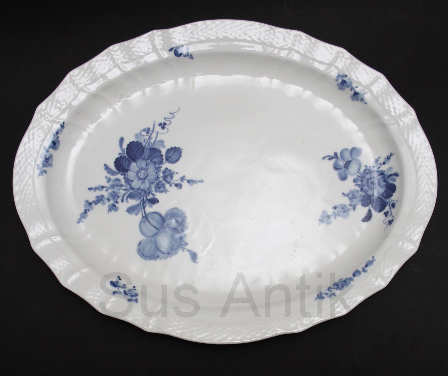 Stort stegefad, Blå Blomst svejfet, Royal Copenhagen