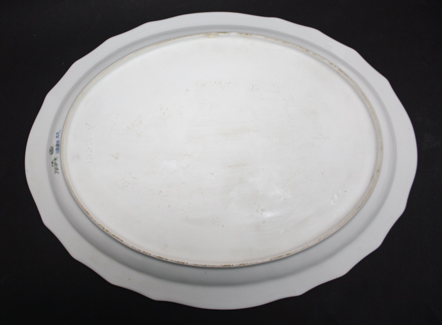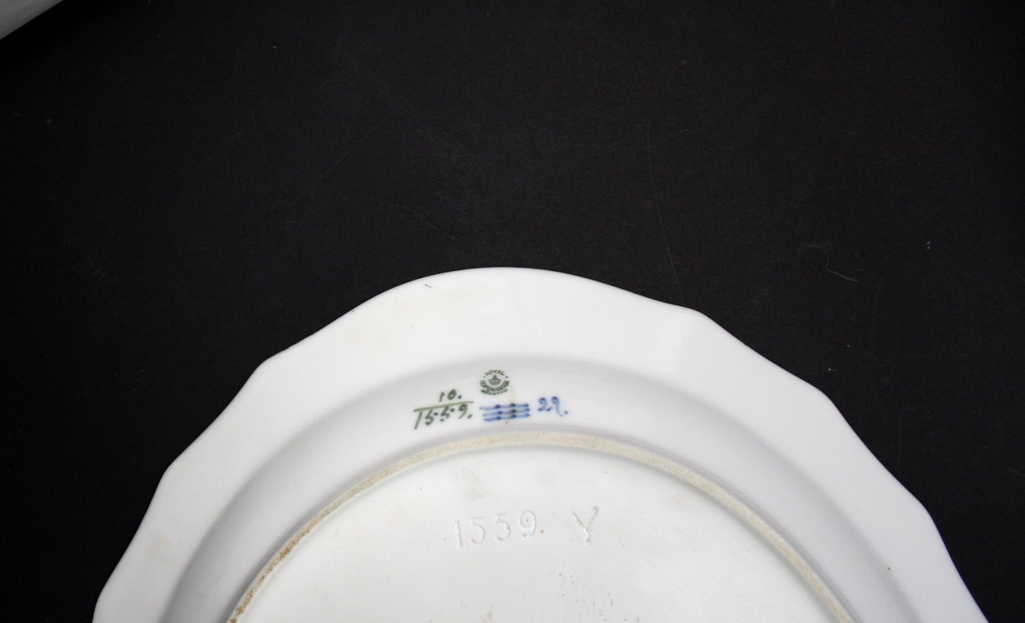 Royal Copenhagen, Blå Blomst svejfet, Stort stegefad. Nr.10/1559. Længde 46 cm. Bredde 35,5 cm. II. sortering. Afslag på undersiden i bunden. Overflade brugsslid. Pris: SOLGT
