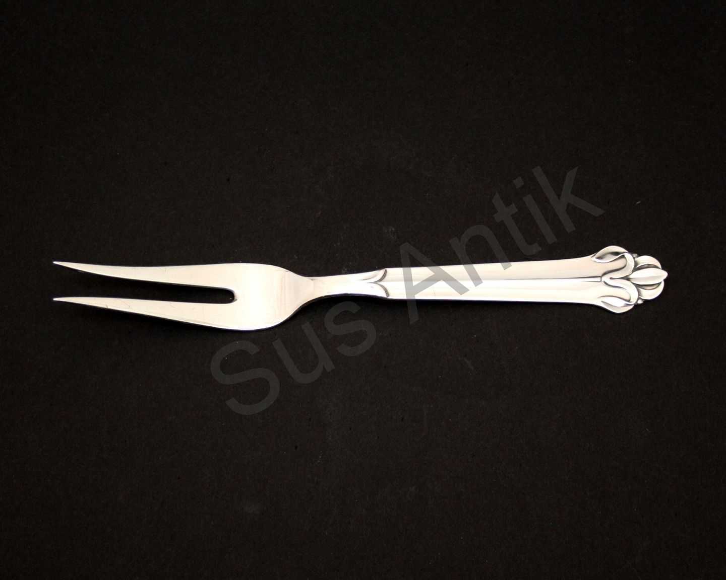 Horsens sølvvarefabrik, Iris sølvpletbestik. Stegegaffel. Længde 21 cm. Almindeligt brugsslid. Pris: SOLGT