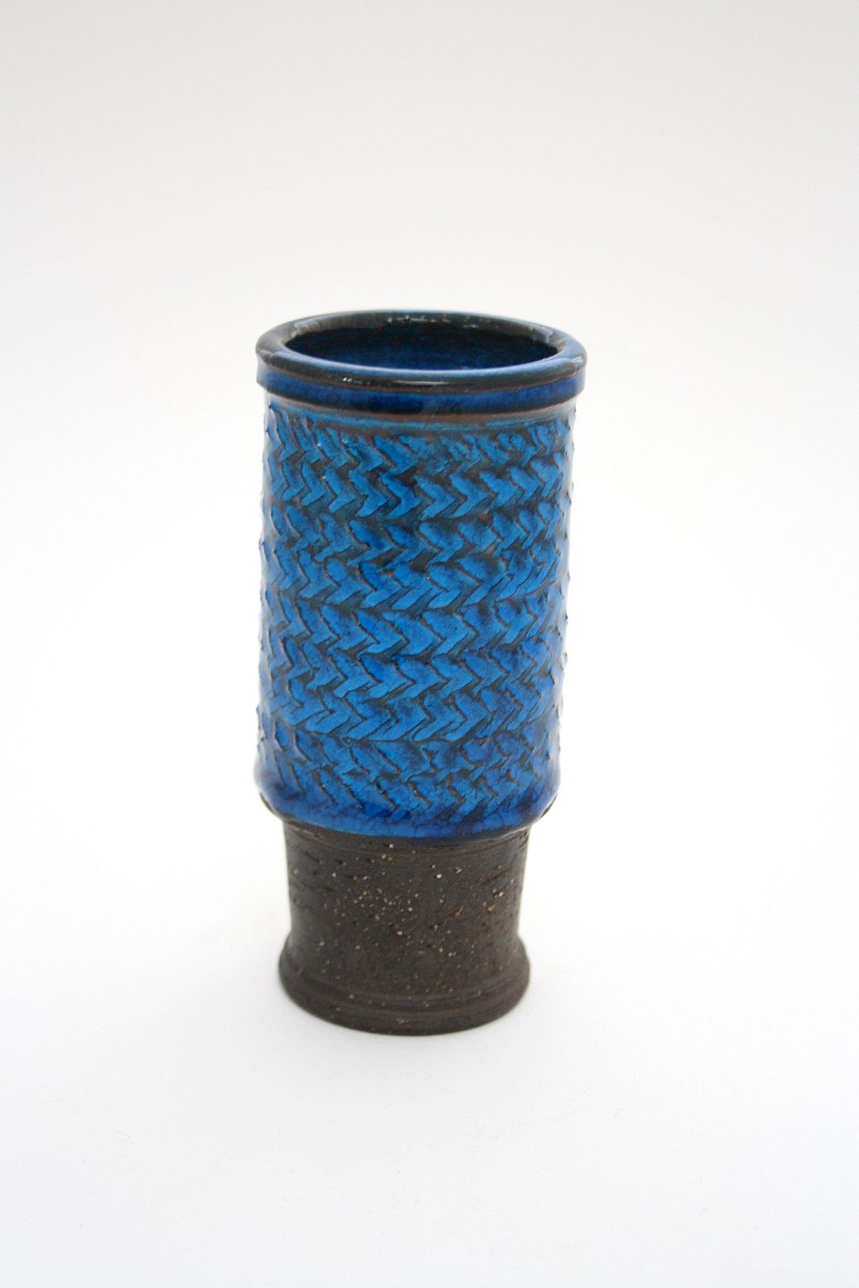 Kähler, blå saltglasur stentøj Lille vase/bæger designet af Nils Kähler i 1970'erne. Højde 10,5 cm. Diameter 5 cm. Pris: solgt