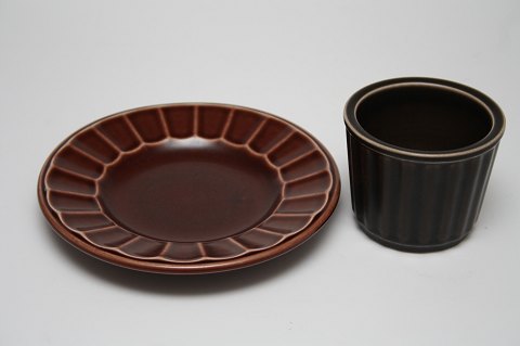 Knabstrup, Knabstrupstellet brun, Nøddebo. Produceret på Knabstrup i perioden 1966-1972 og var det første stel af stentøj i Knabstrups sortiment. Stellet er designet og formgivet af Johannes Hansen, kunstnerisk leder på Knabstrup Keramik fra 1953-1970.